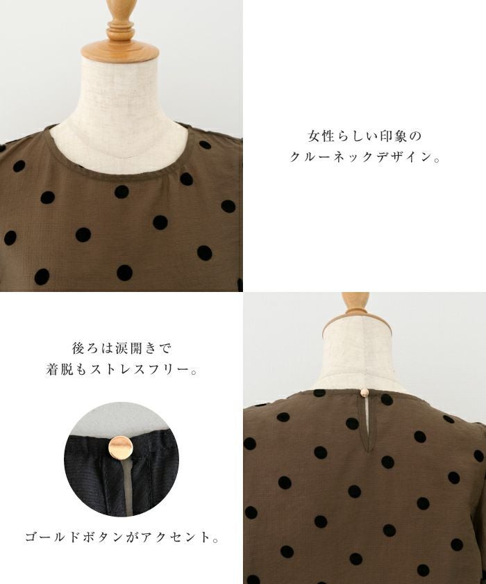 さらりと軽やかなシアー素材に、小さめドット柄をオン。