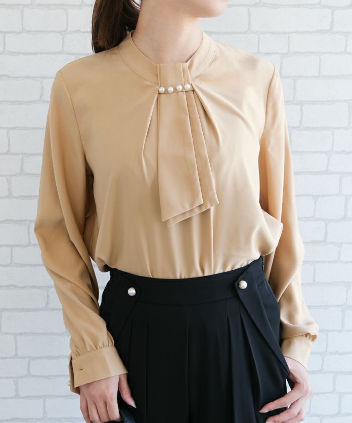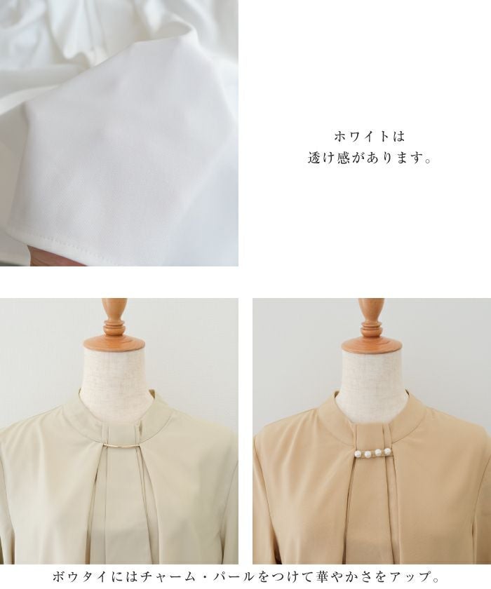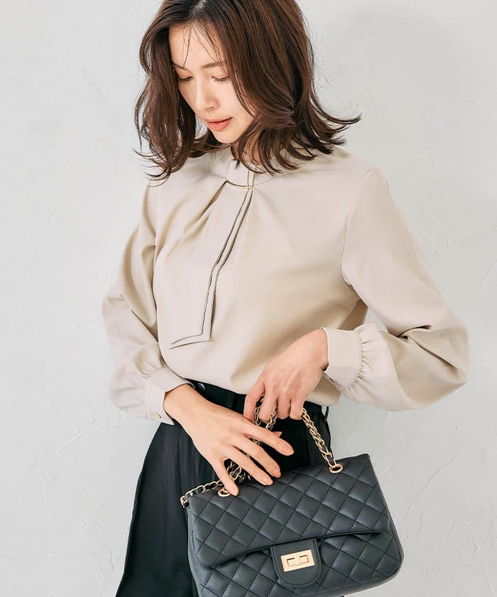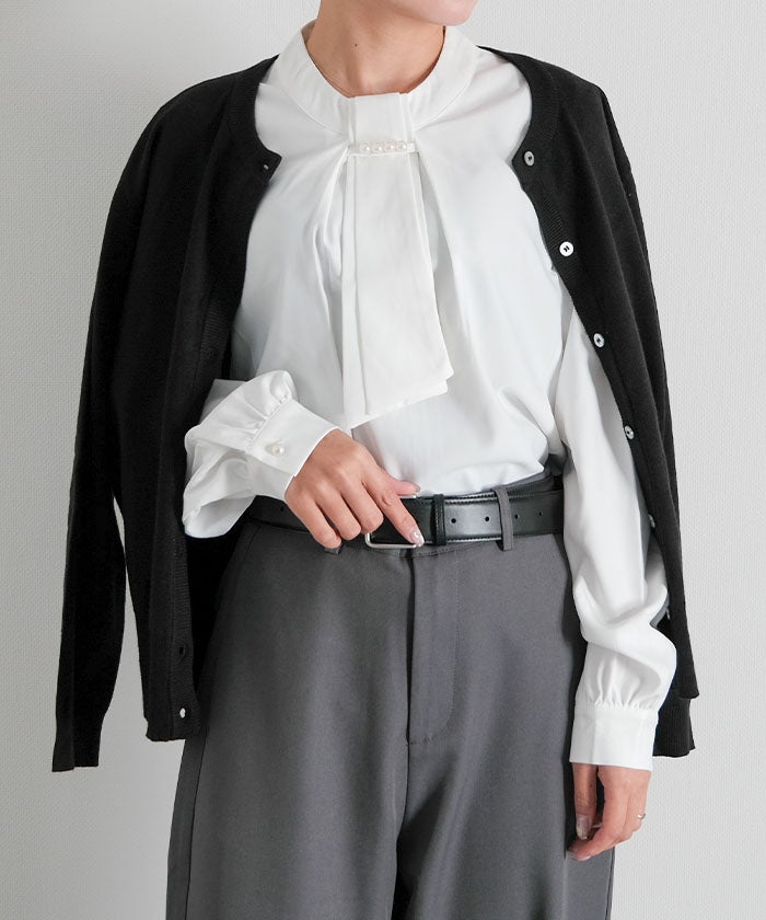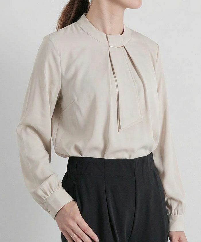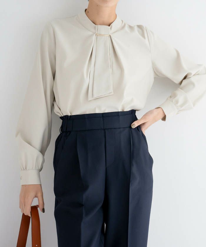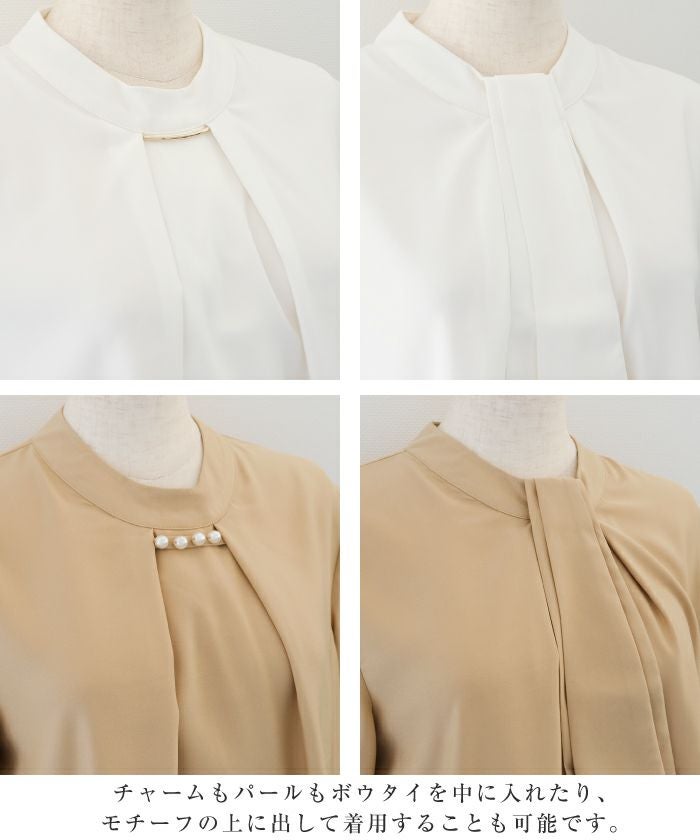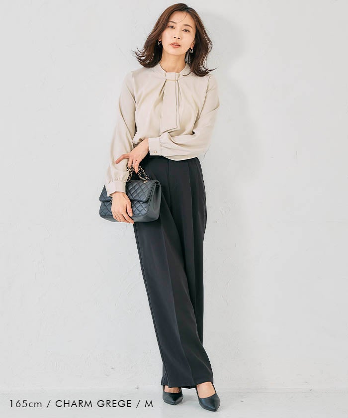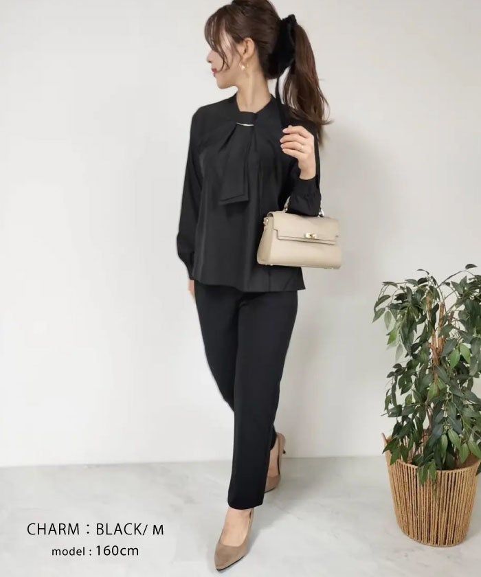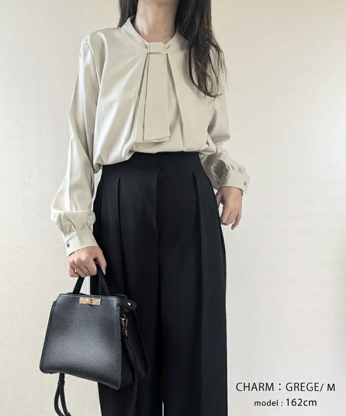 • 上品な印象のチャーム付きボウタイブラウス