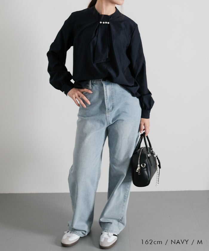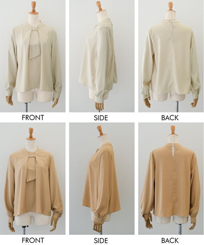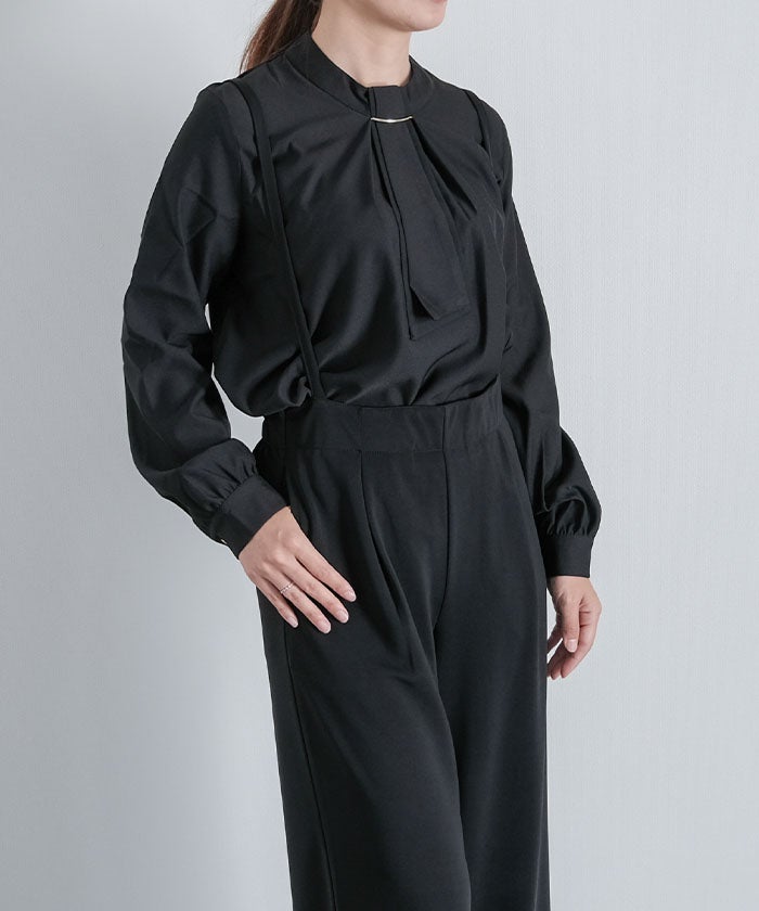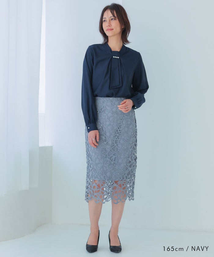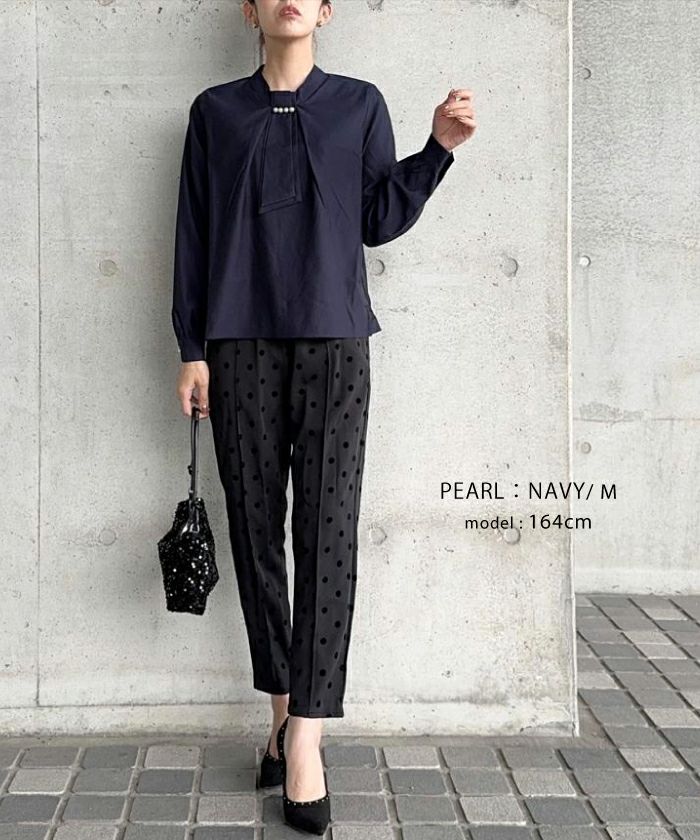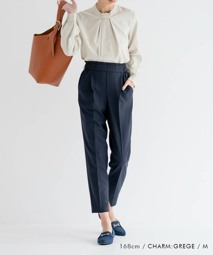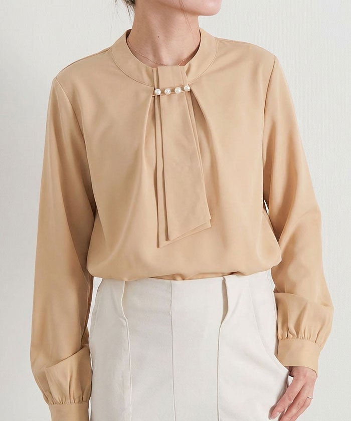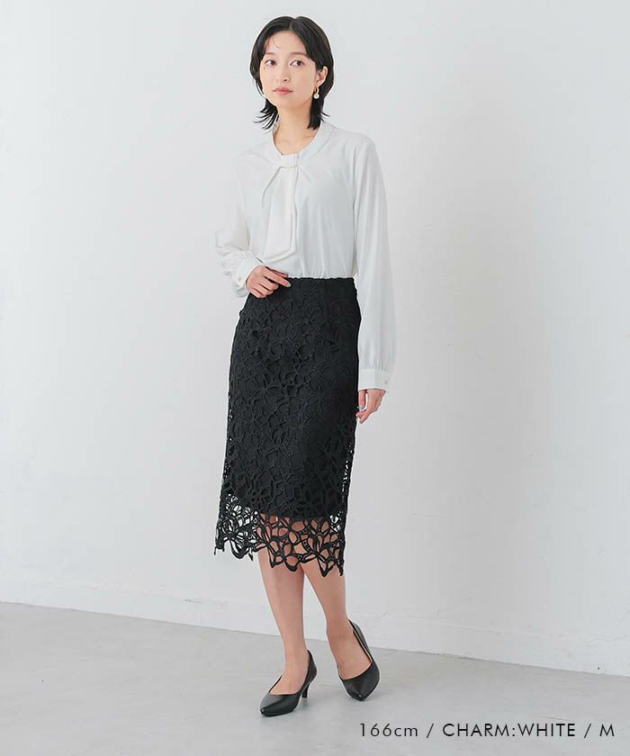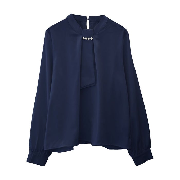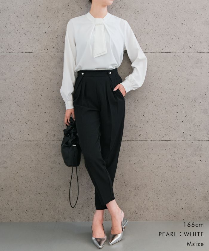 • 上品な印象のチャーム付きボウタイブラウス