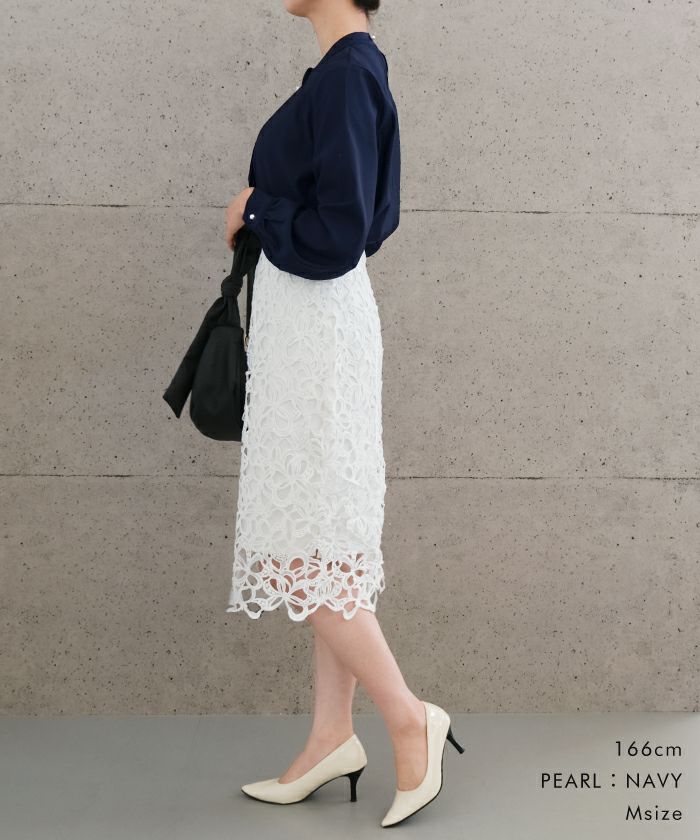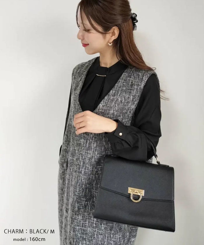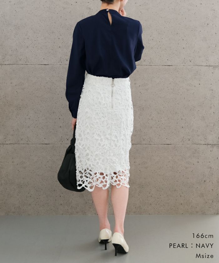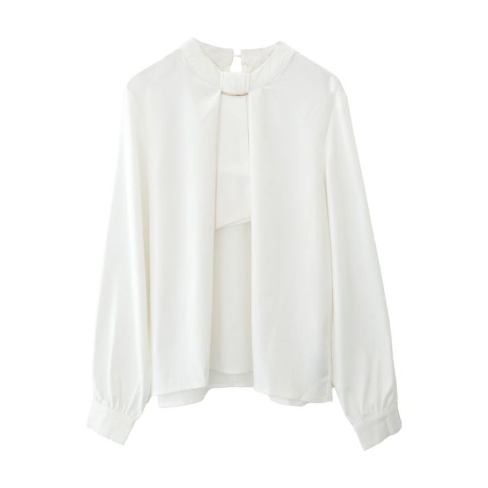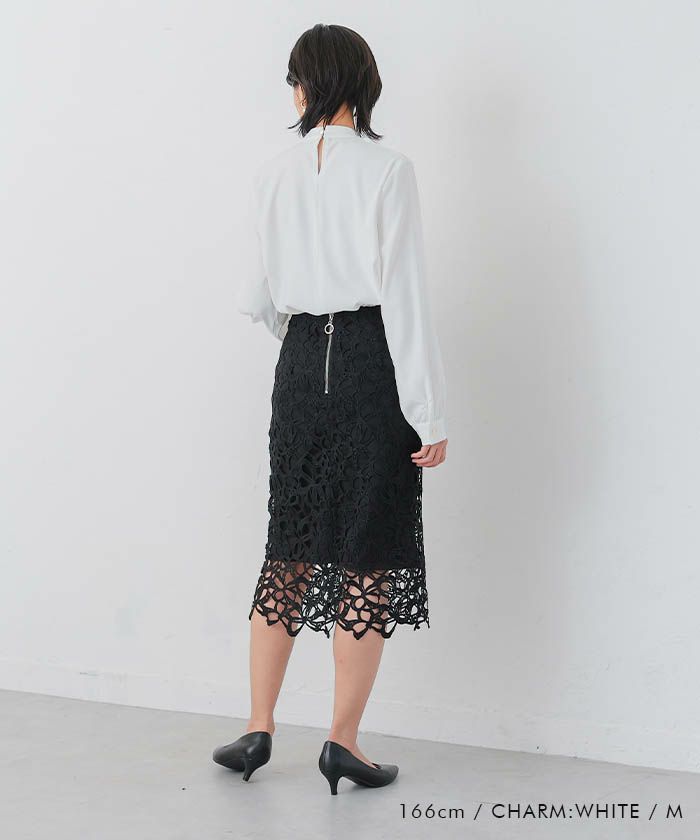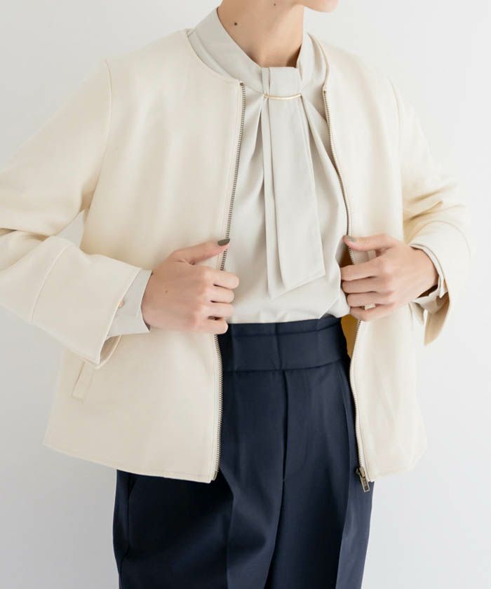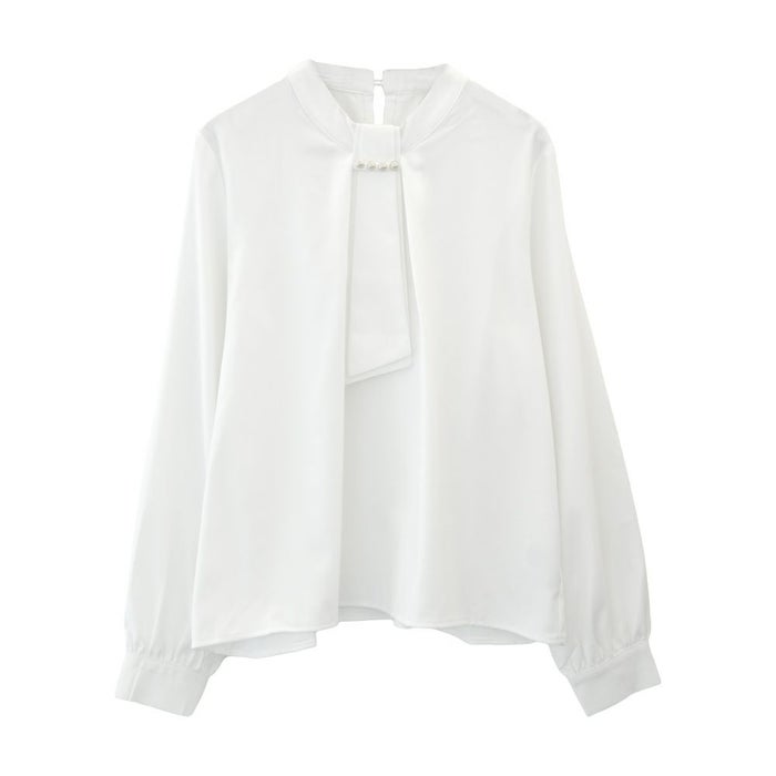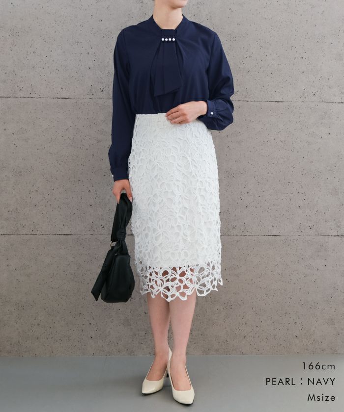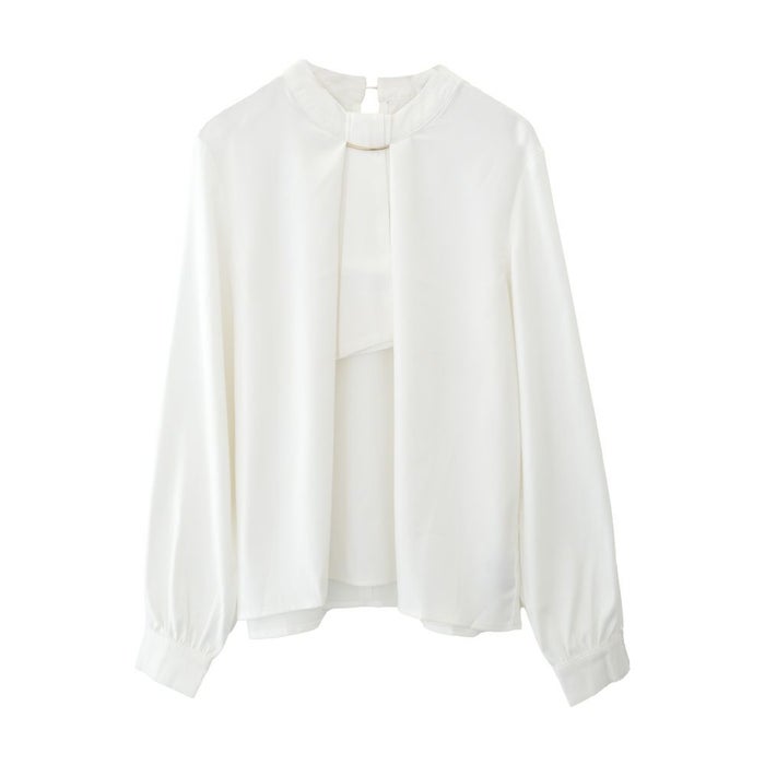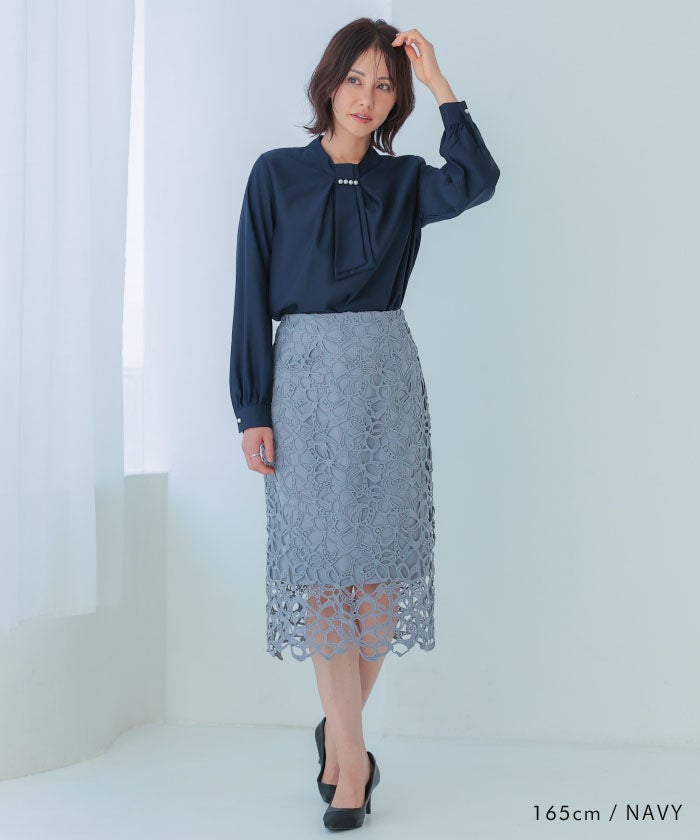• 上品な印象のチャーム付きボウタイブラウス