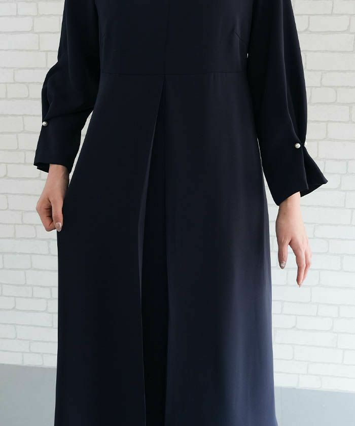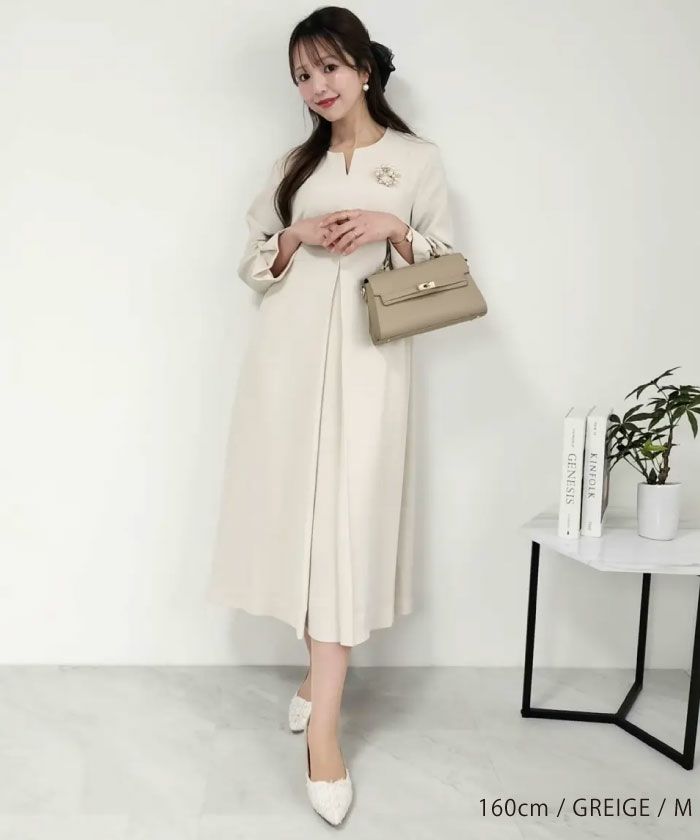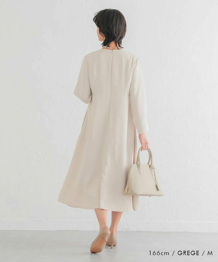 • 動くたびに美しく広がるスカートシルエットが魅力のキーネックワンピース