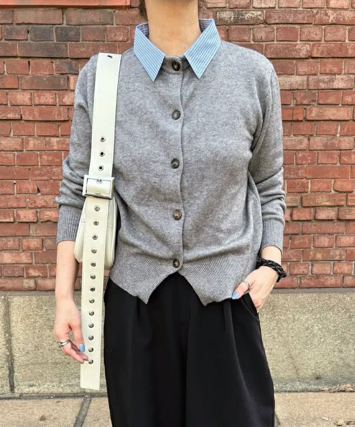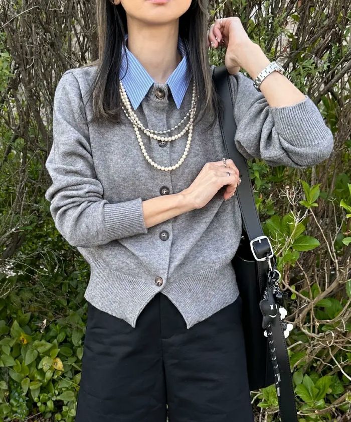 • シンプルながらも、着こなしにアクセントをプラスしてくれる襟付きカーディガン