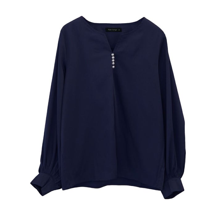 送料無料 キーネックパールボタンブラウス レディース 春 秋 ≪ゆうメール便配送20・代引不可≫ | アクアガレージ aquagarage