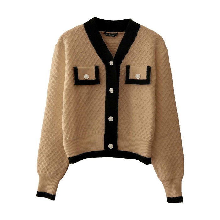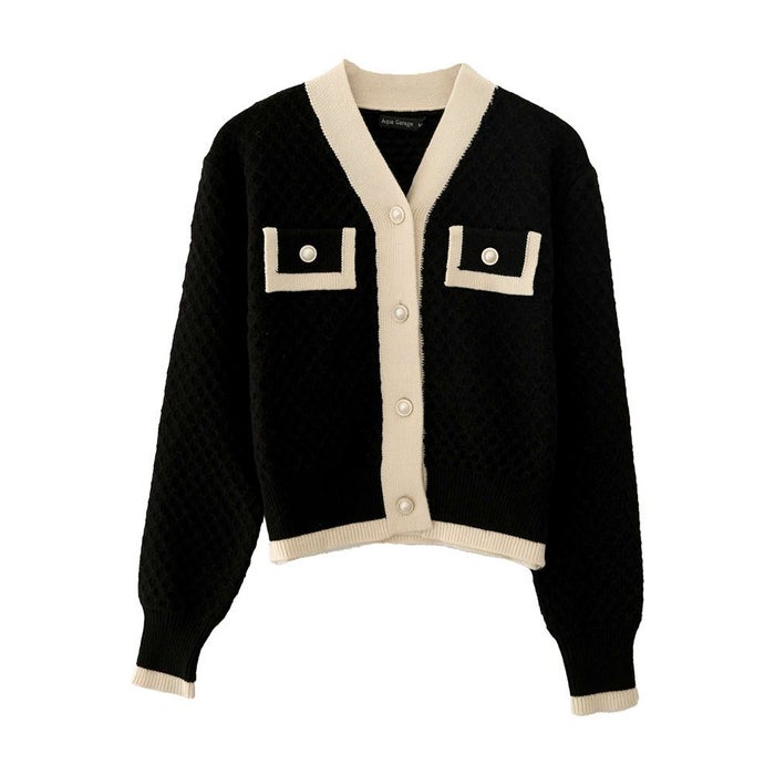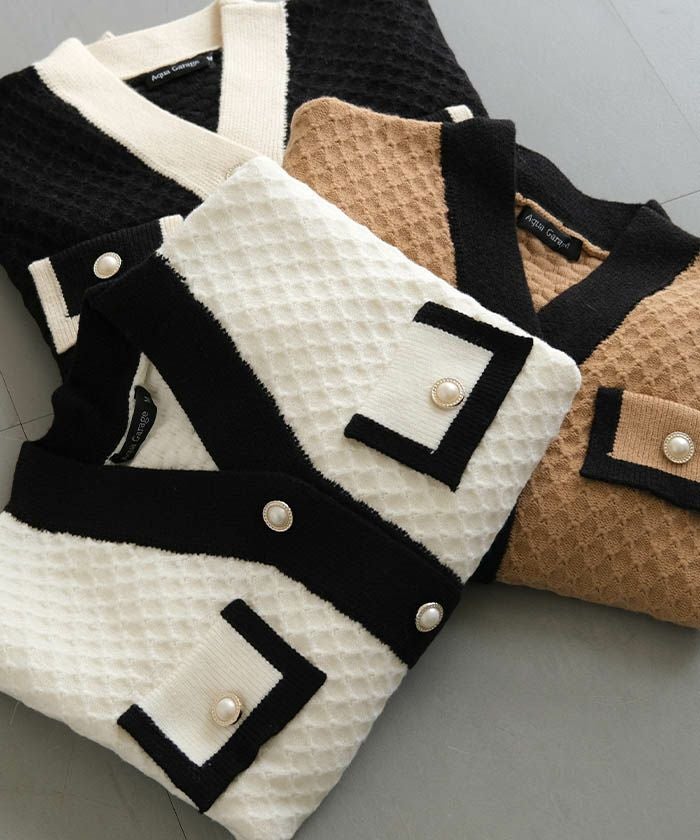 送料無料 バイカラーコンパクトカーディガン 春 秋 冬 長袖 M L | アクアガレージ aquagarage