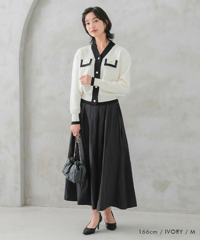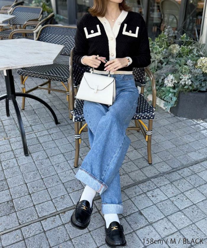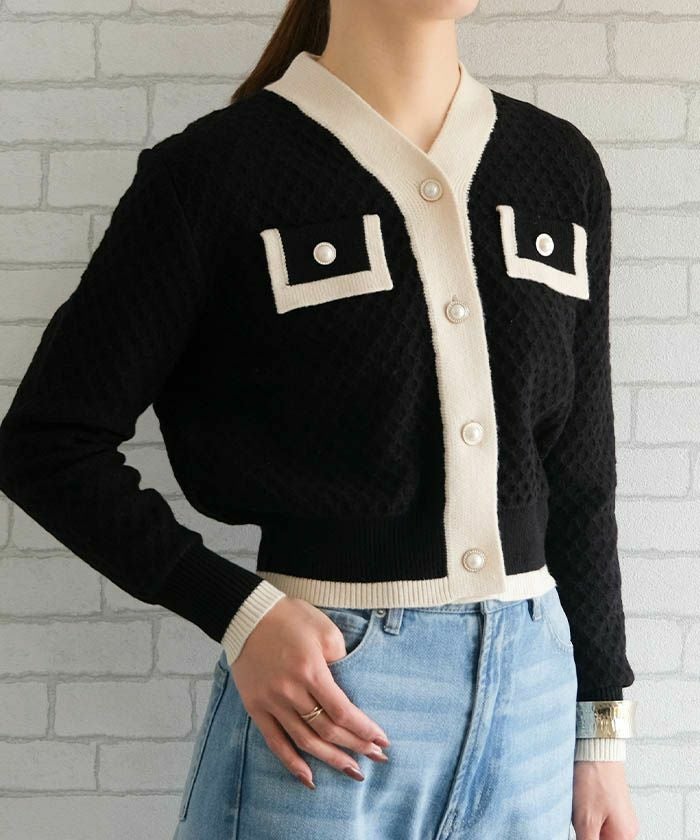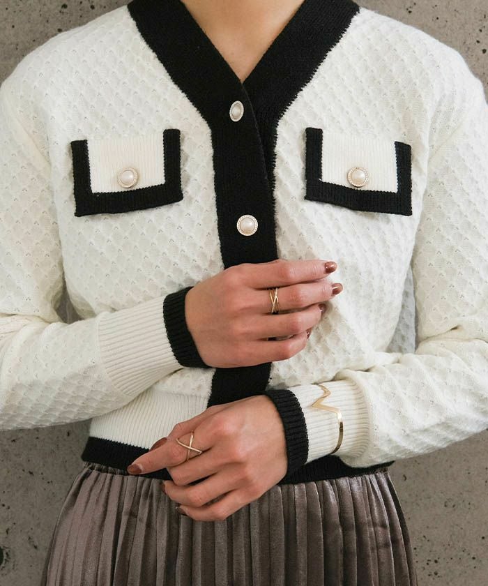 • コーデのアクセントにもぴったりなバイカラーコンパクトカーディガン