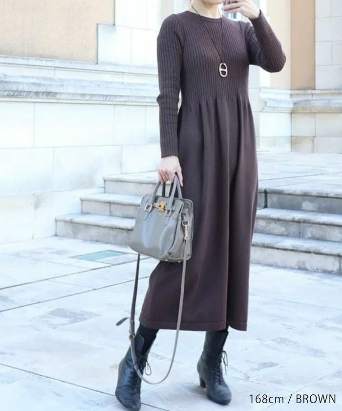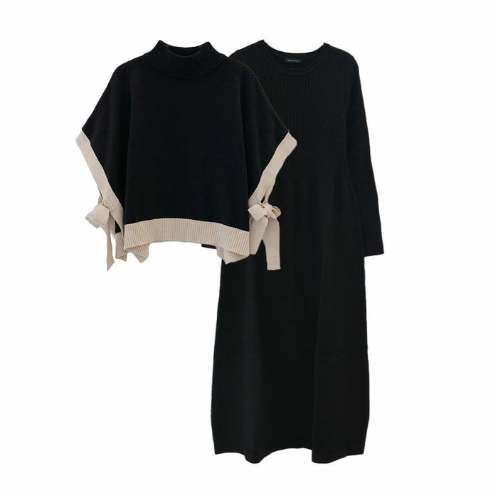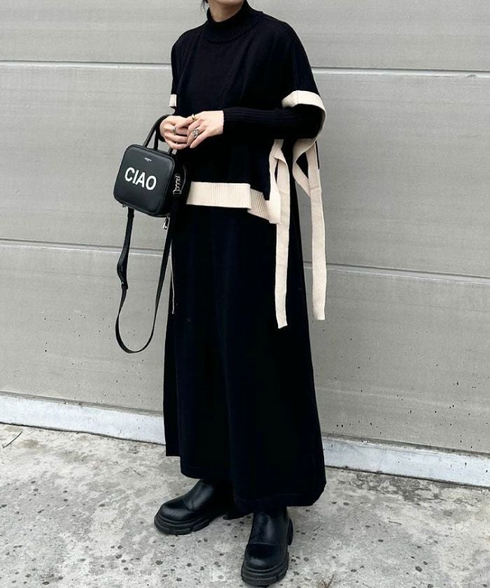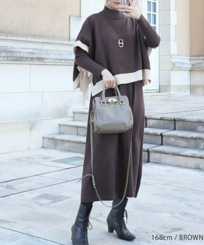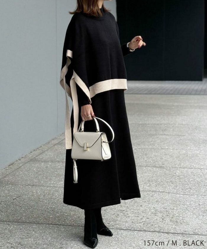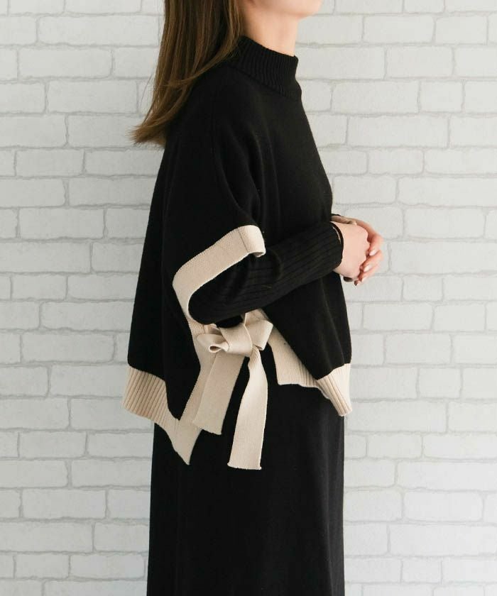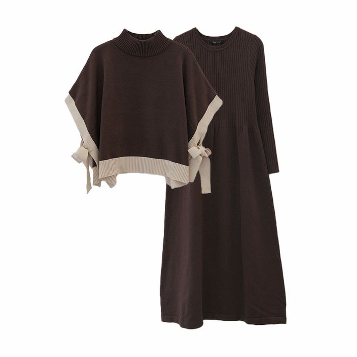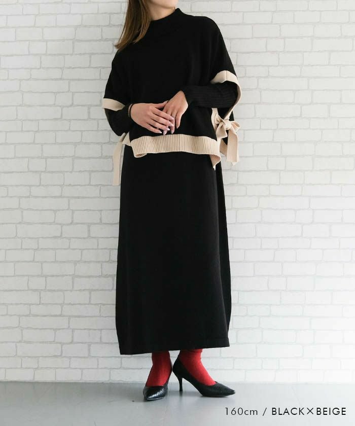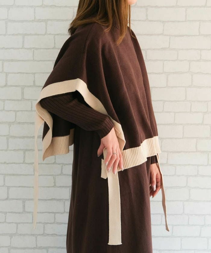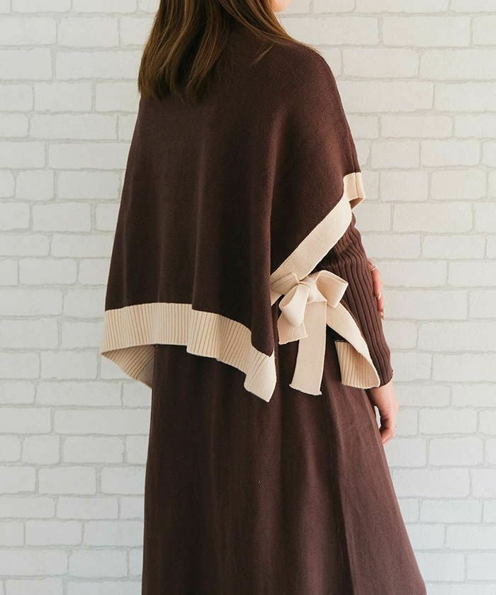 • 着回し力抜群!サイドリボンケープ付きリブニットワンピース