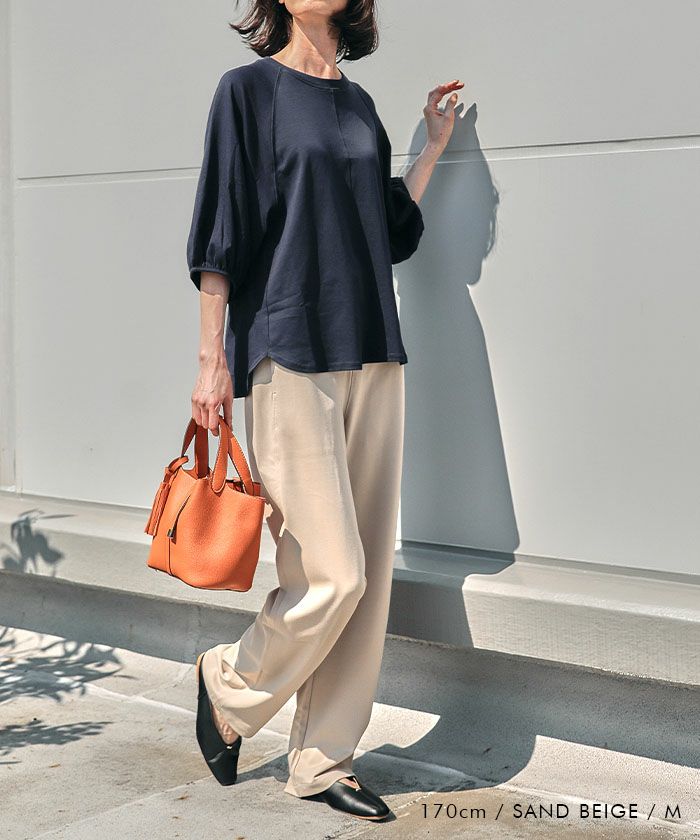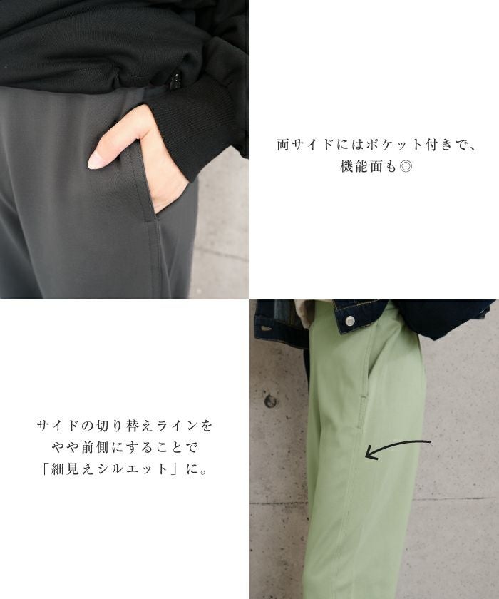 サイドの切り替えラインをやや前側にすることで「細見えシルエット」に。
