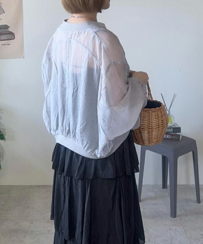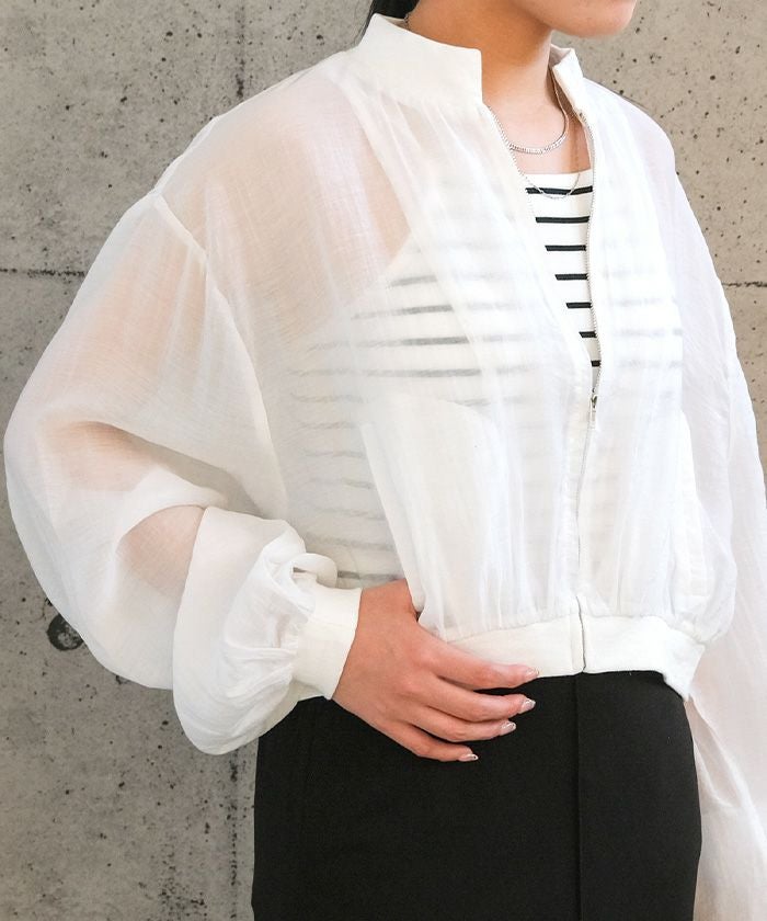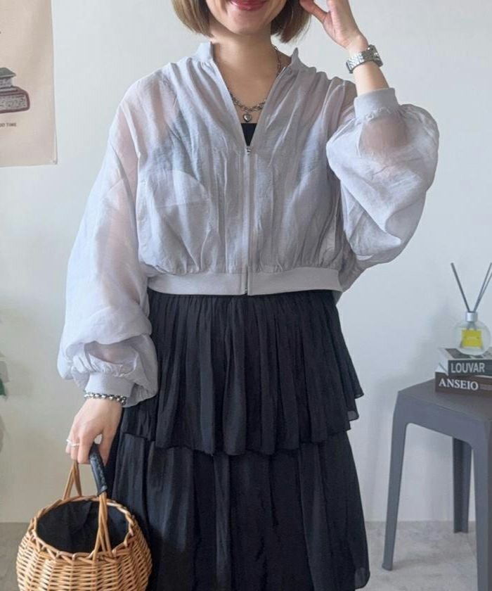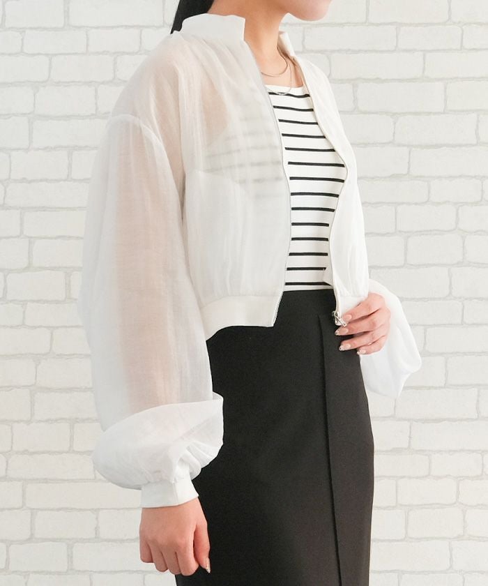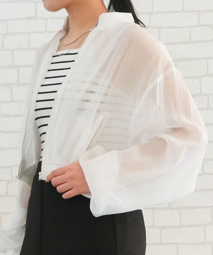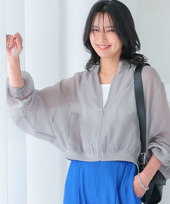 軽やかなシアー感で、羽織るだけで抜け感を演出するショートブルゾン。