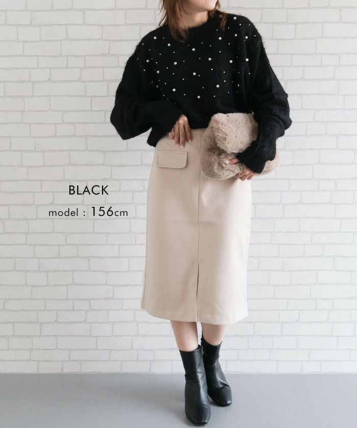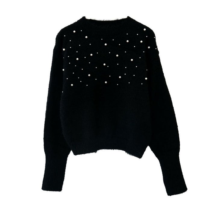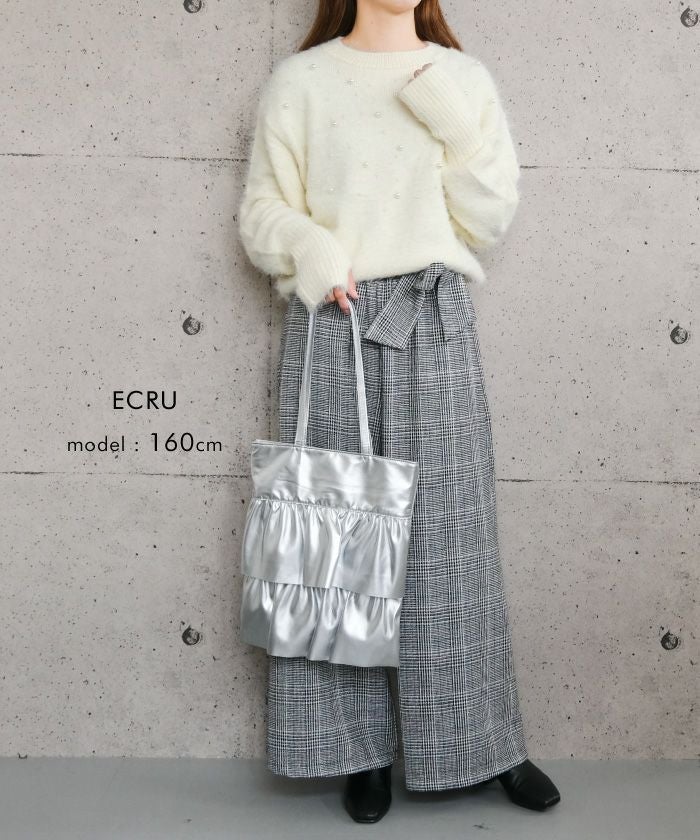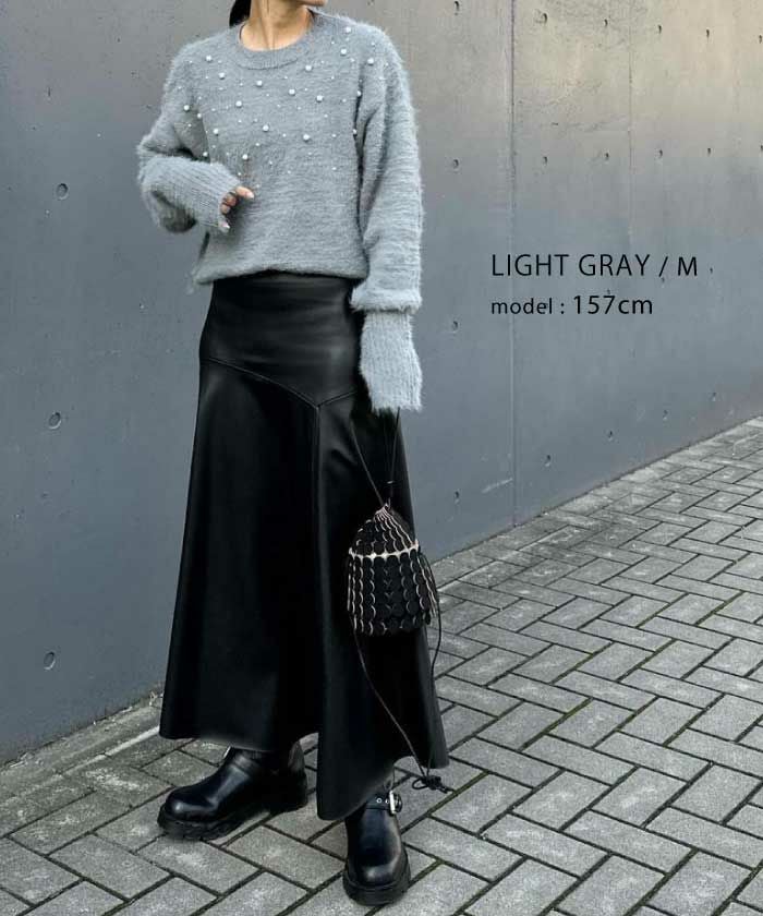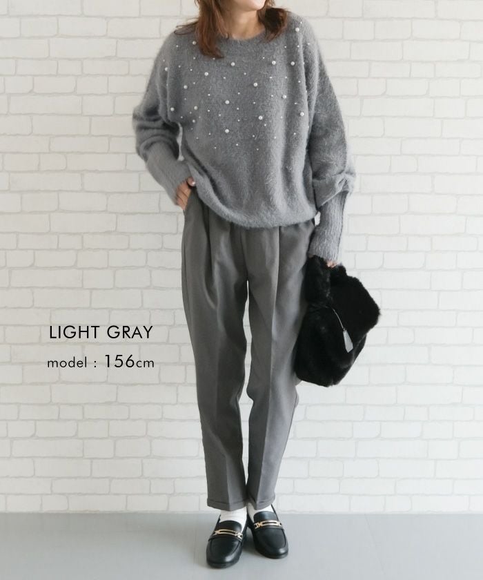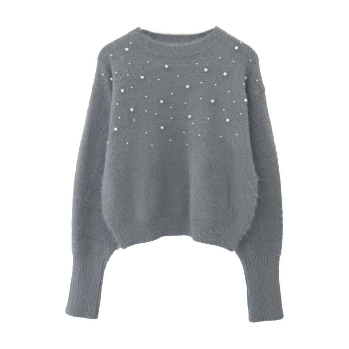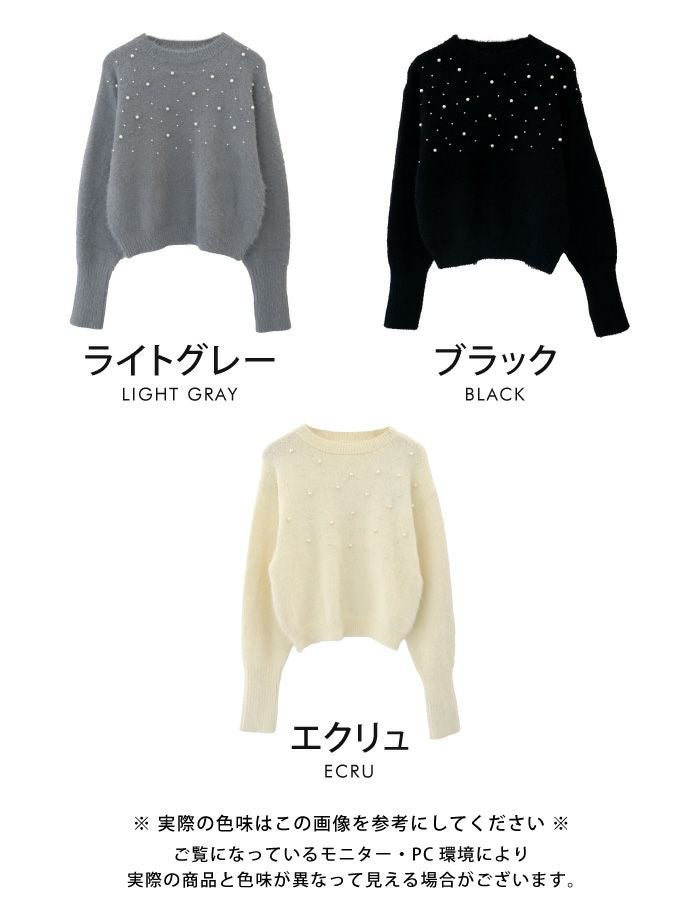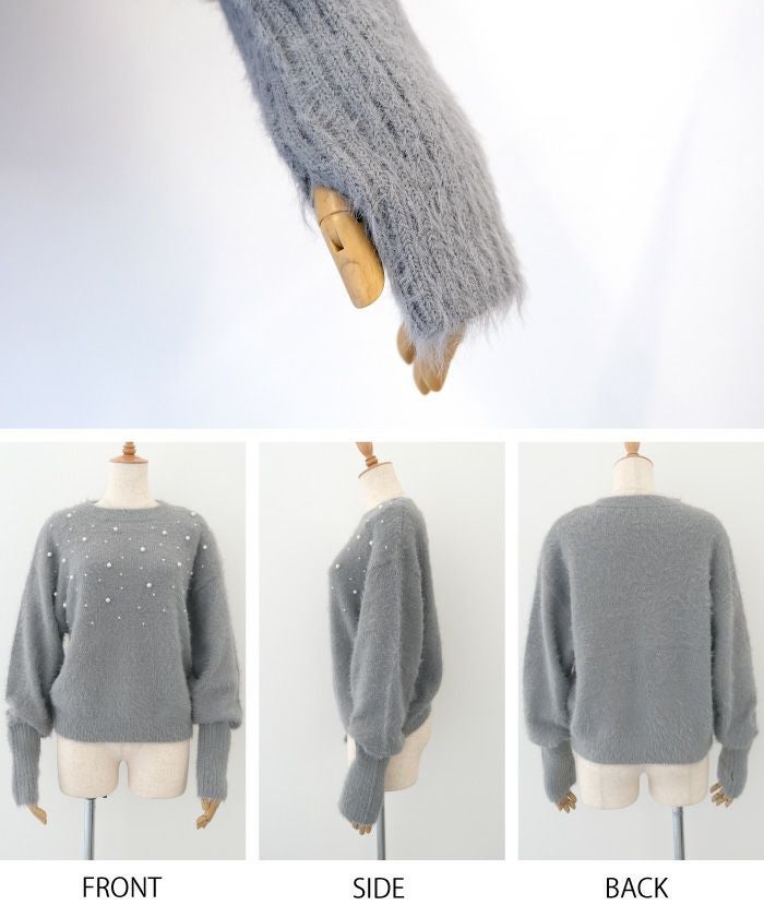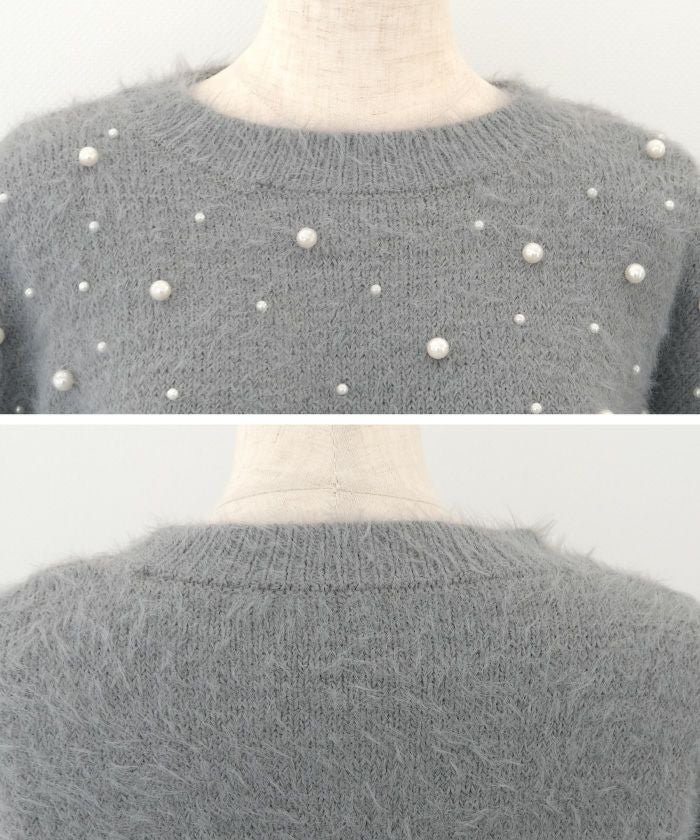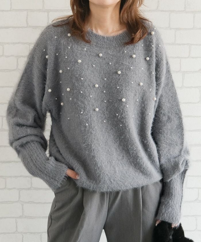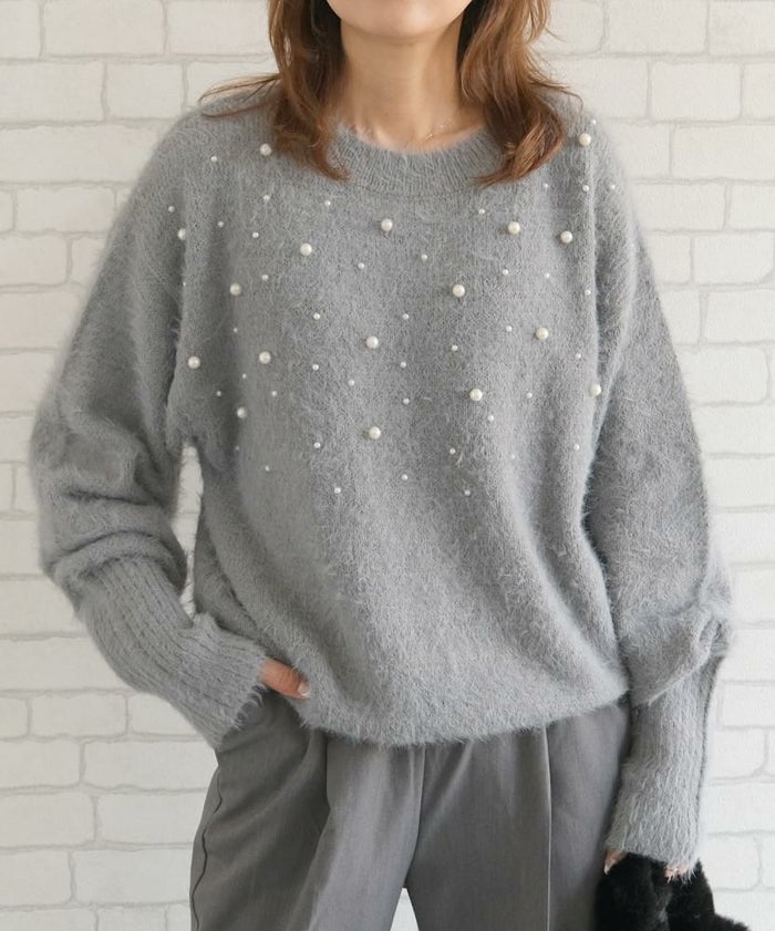 • パールを散りばめたフェミニンなシャギーニットトップス