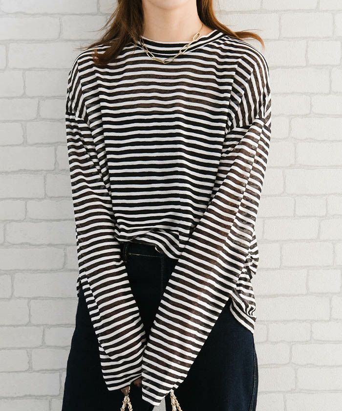 • 程よい透け感とゆるっとしたシルエットが魅力のシアーボーダーカットソー