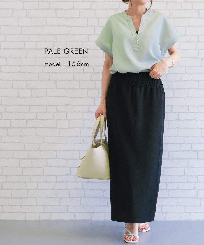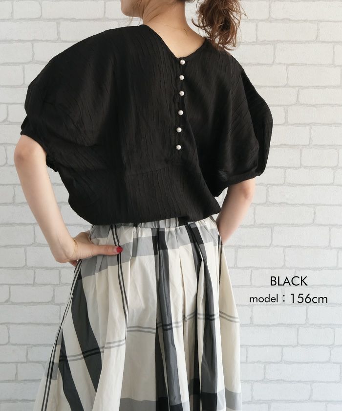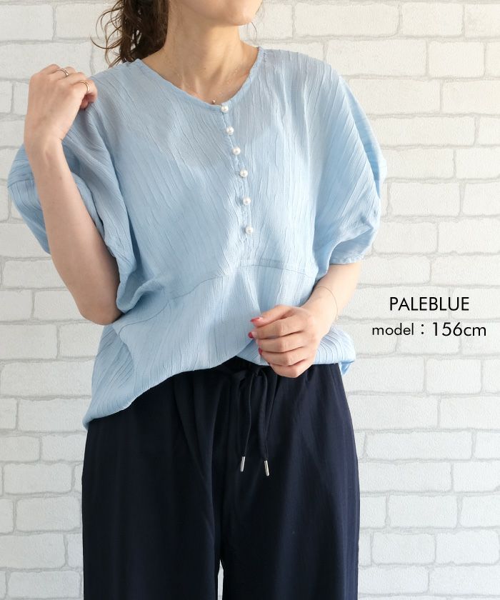 送料無料 パール釦キーネックブラウス 春 夏 秋 ≪ゆうメール便配送20・代引不可≫ | アクアガレージ aquagarage