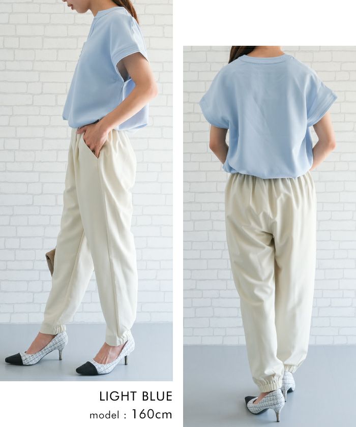 送料無料 ステッチフレンチスリーブブラウス 春 夏 秋 M L レディース ≪ゆうメール便配送10・代引不可≫ | | アクアガレージ aquagarage