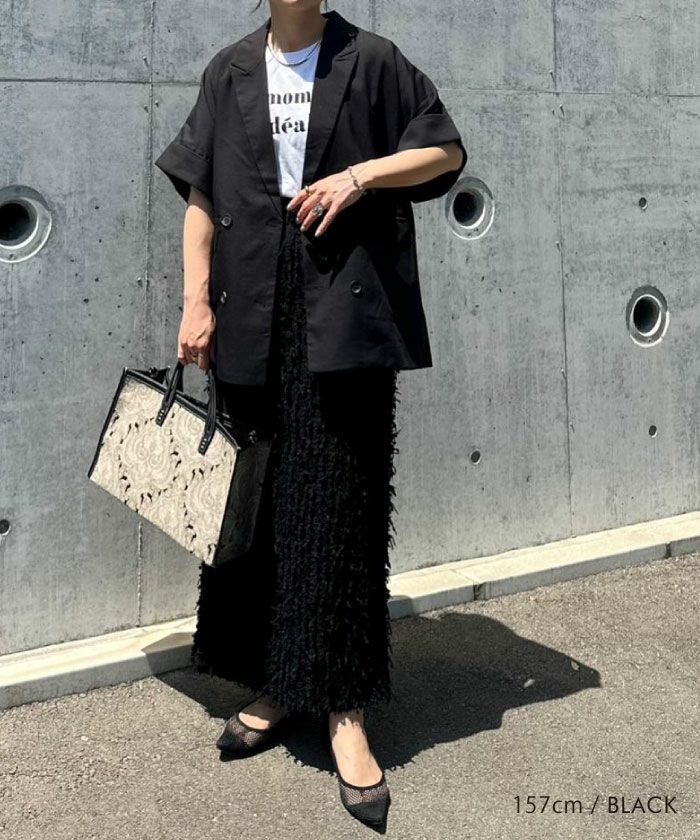 送料無料 サマーツイードノーカラーフリルジャケット 春 秋 冬 M | アクアガレージ aquagarage