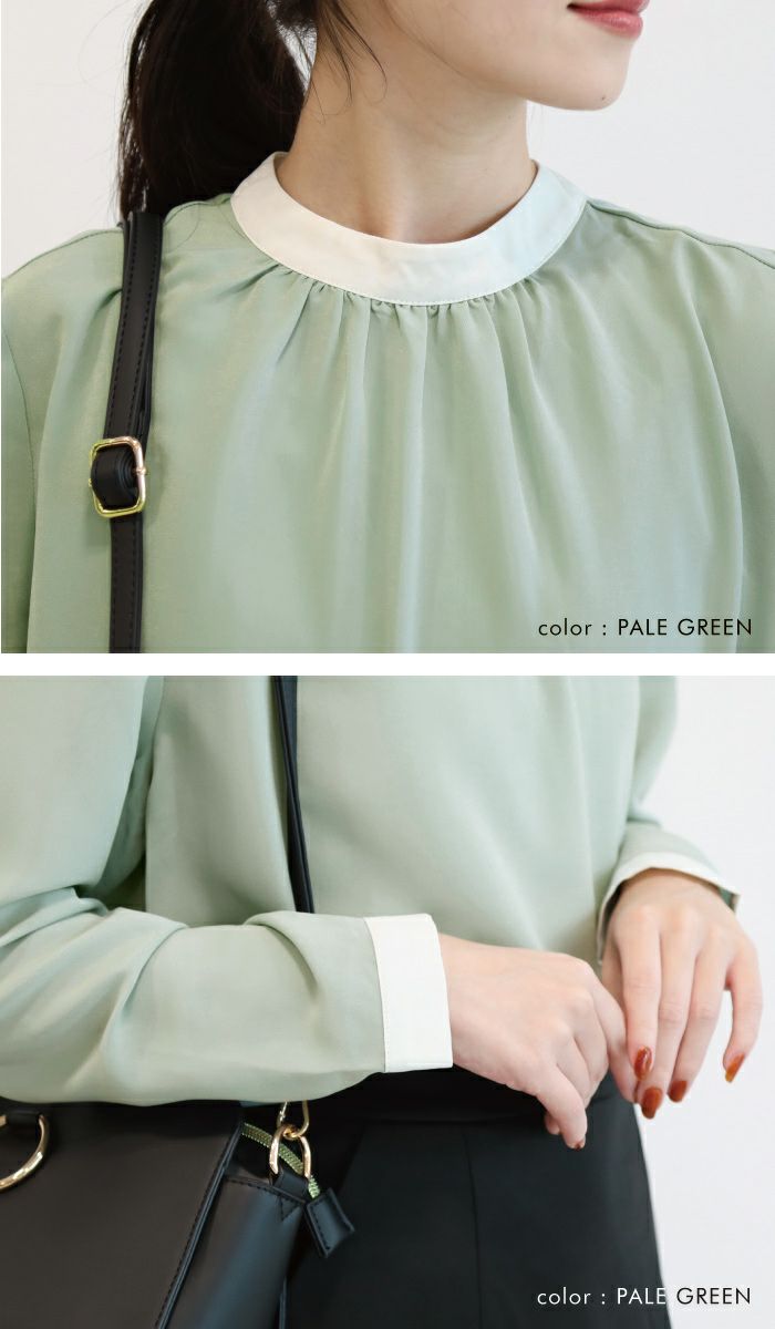 送料無料 バイカラーギャザーブラウス レディース 春 秋 長袖 M L ≪ゆうメール便配送20・代引不可≫ | アクアガレージ aquagarage