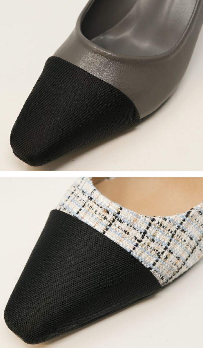 送料無料 フェイクレザーorツイードから選べる スクエアトゥバイカラーパンプス レディース | アクアガレージ aquagarage