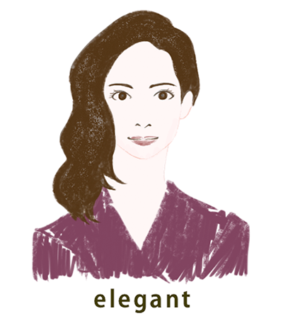 エレガント、上品、洗練、華やか、落ち着き