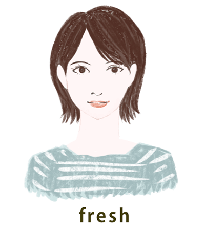 柔らかい印象にしたい場合はフレッシュにもっていき、大人っぽくしたい場合はクール、もしくはエレガントにもっていくとよいでしょう。