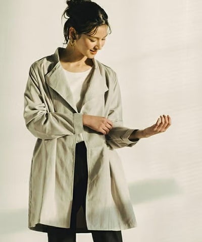 太ももくらいまでの丈のトレンチが欲しかったので購入出来て良かったです。軽さもあり顔周りも明るくなります。子供がいると腰が隠れる丈感か、太ももくらいの丈感のアウターの方が何かと動きやすいので、たくさん活躍するアウターだと思いました。 スモーキーグリーンはメロンのようなカラーでお気に入りになりました。 #着こなシェア #アクアガレージ