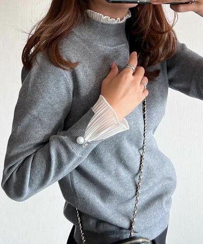 袖・襟シフォンプリーツニットトップス レディース 春 秋 冬 M L LL 長袖 ≪ゆうメール便配送30・代引不可≫ | アクアガレージ aquagarageのレビュー