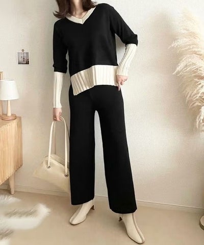 バイカラーニットアップ レディース 秋 冬 長袖 ニットセットアップ | アクアガレージ aquagarageのレビュー