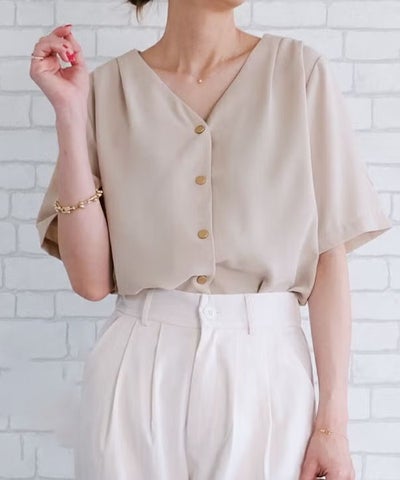 ショルダータックVネックブラウス 春 夏 秋 ≪ゆうメール便配送10・代引不可≫ | アクアガレージ aquagarageのレビュー