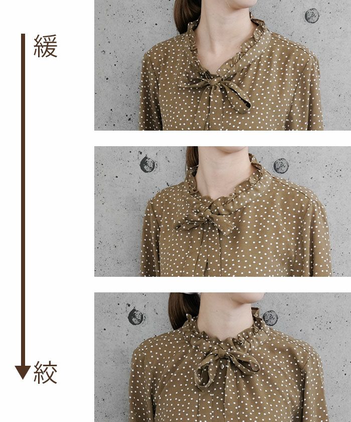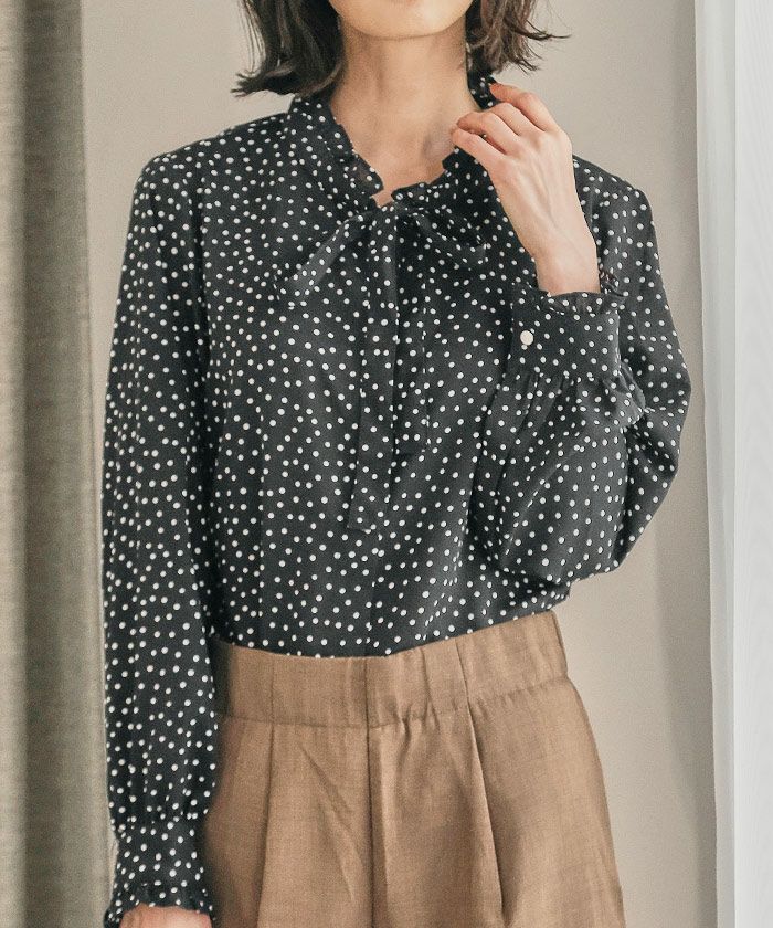 送料無料 ドット柄フリルリボンブラウス 春 秋 レディース ≪ゆうメール便配送20・代引不可≫ | アクアガレージ aquagarage