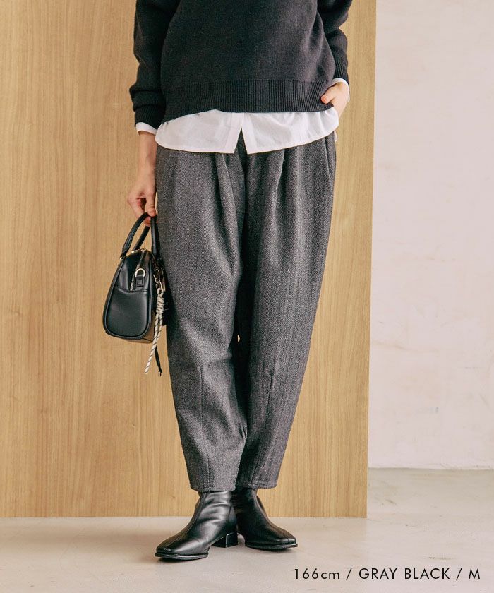 送料無料 ヘリンボーンコクーンパンツ レディース 春 秋 冬 M L LL ≪ゆうメール便配送30・代引不可≫ |アクアガレージ aquagarage