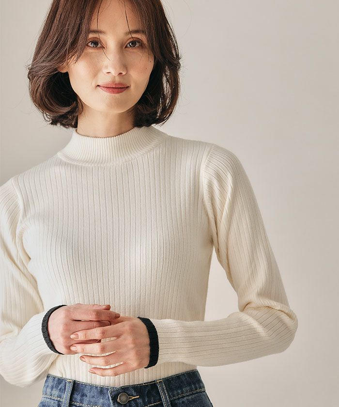 送料無料 ボトルネック配色リブニットトップス 春 秋 冬 M レディース ≪ゆうメール便配送30・代引不可≫ | | アクアガレージ aquagarage 一部予約(11月下旬頃)