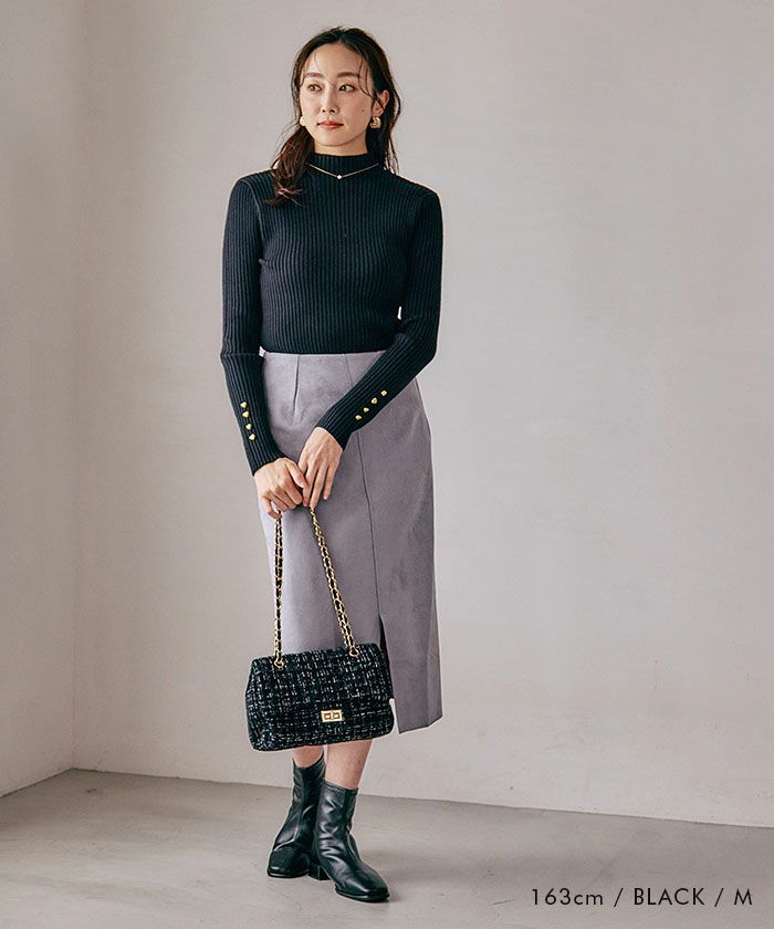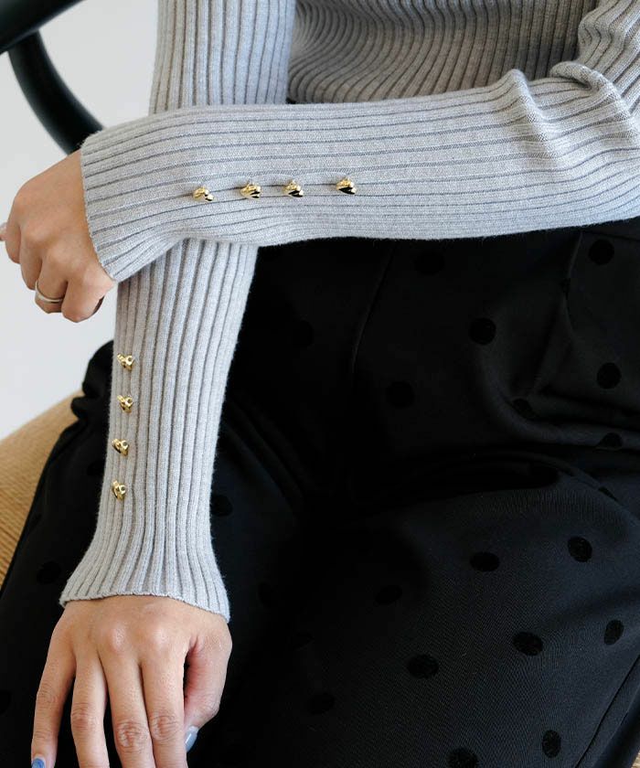送料無料 ハイネック袖ハートボタンリブニットトップス 春 秋 冬 M レディース ≪ゆうメール便配送30・代引不可≫ | | アクアガレージ aquagarage