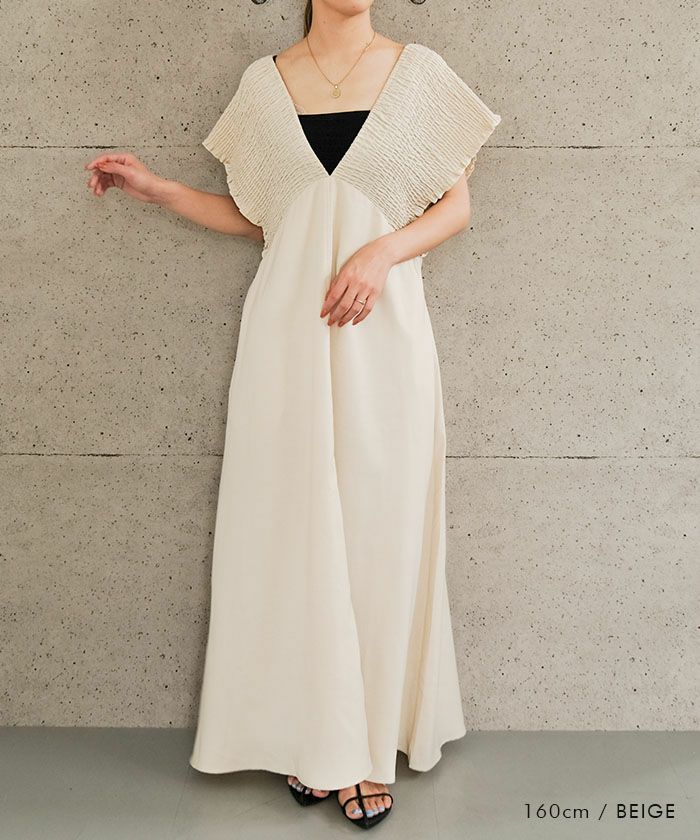 送料無料 シャーリングロングワンピース 春 夏 秋 ≪ゆうメール便配送30・代引不可≫ | アクアガレージ aquagarage