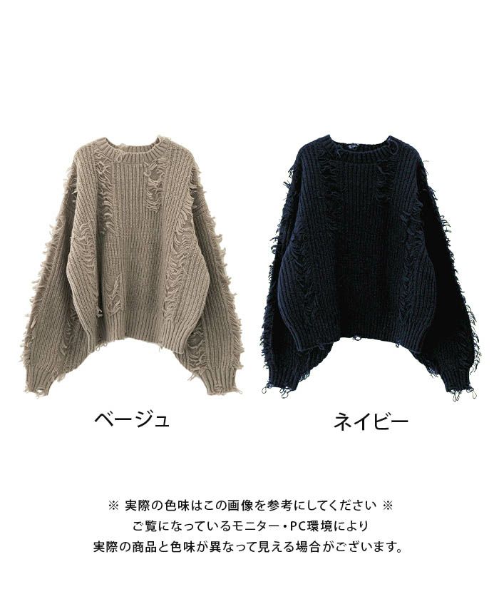 送料無料 ダメージフリンジニットトップス 秋 冬 M レディース | アクアガレージ aquagarage