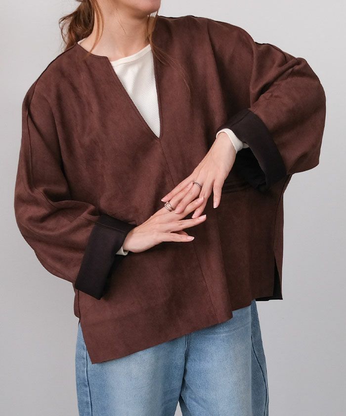 送料無料 スエードキーネックペプラムトップス レディース 春 秋 冬 M ≪ゆうメール便配送20・代引不可≫|アクアガレージ aquagarage