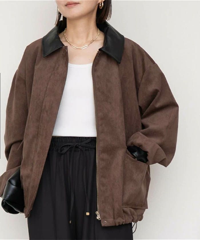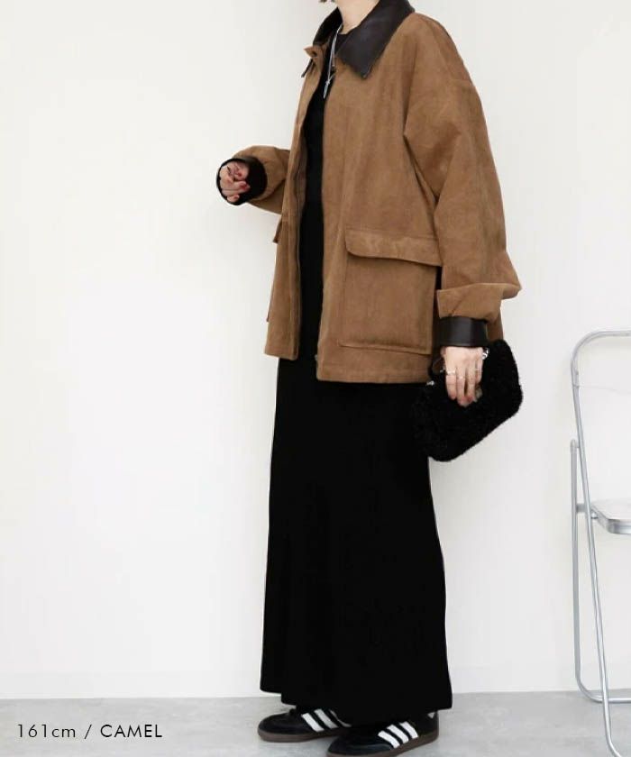 送料無料 襟配色フェイクスエードジャケット 秋 冬 M | アクアガレージ aquagarage