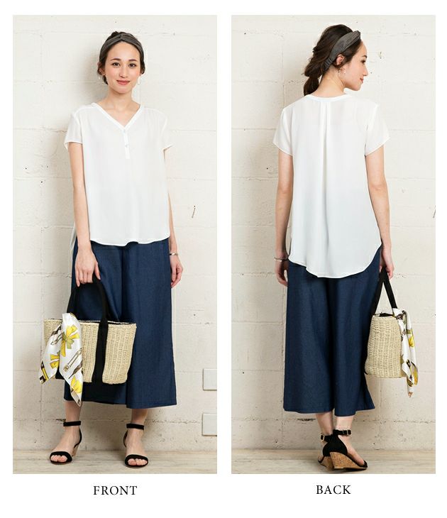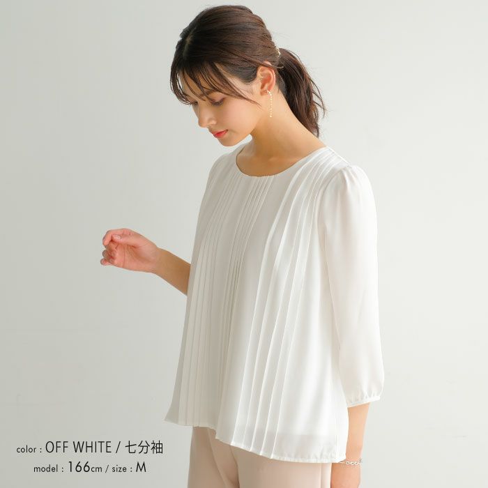 送料無料 半袖or7分袖から選べる フロントプリーツシフォンブラウス M L LL 春 夏 半袖 7分袖 七分袖≪ゆうメール便配送20・代引不可≫ | アクアガレージ aquagarage