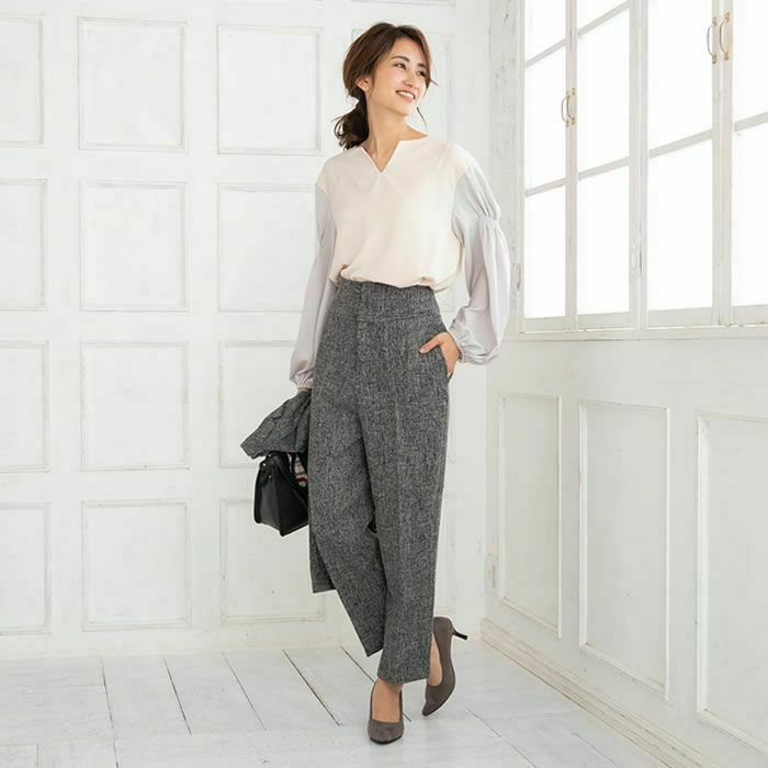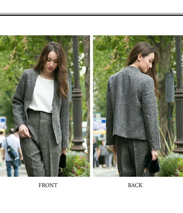 送料無料 【セットアップ可】ツイード調ハイウエストテーパードパンツ 入学式 ママスーツ | アクアガレージ aquagarage
