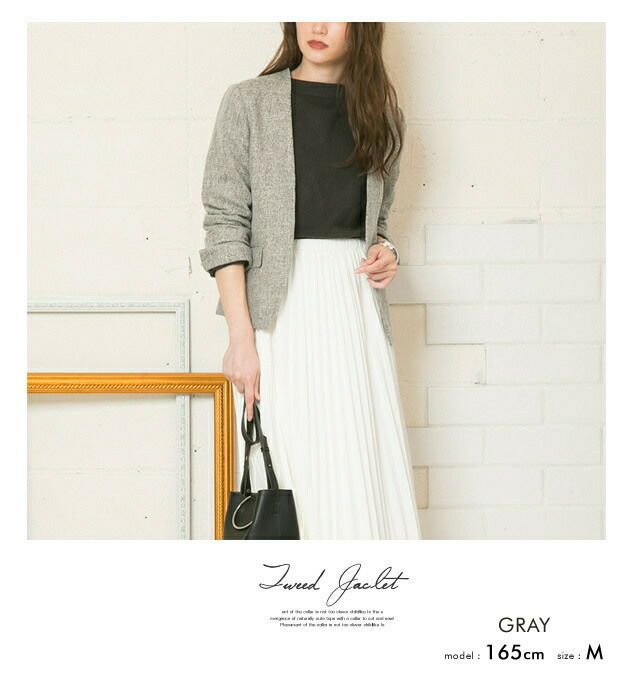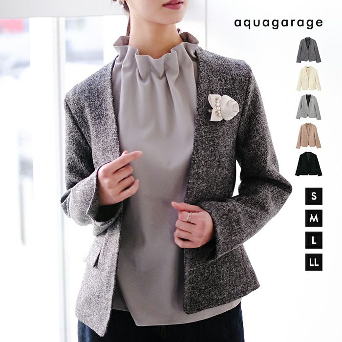 送料無料 【セットアップ可】ノーカラーツイードジャケット レディース M L LL | アクアガレージ aquagarage