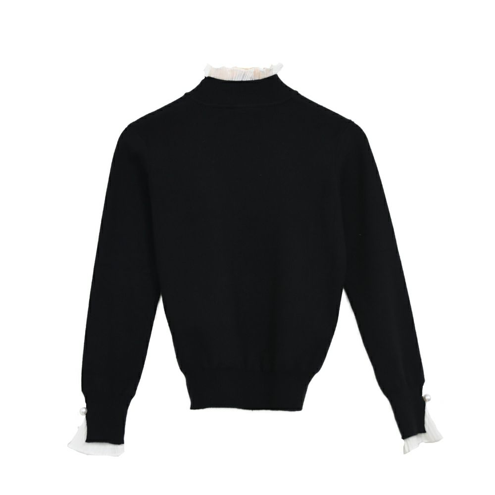 送料無料 袖・襟シフォンプリーツニットトップス レディース 春 秋 冬 M L LL 長袖 ≪ゆうメール便配送30・代引不可≫ | アクアガレージ aquagarage