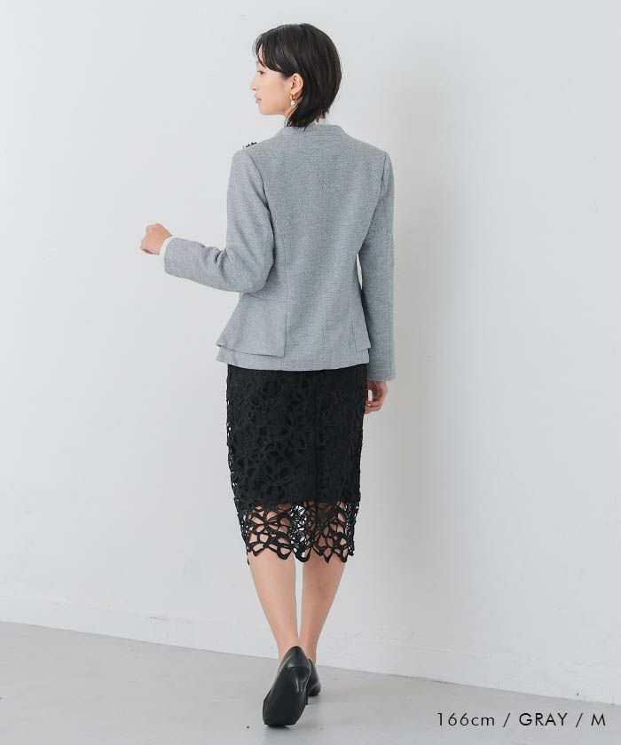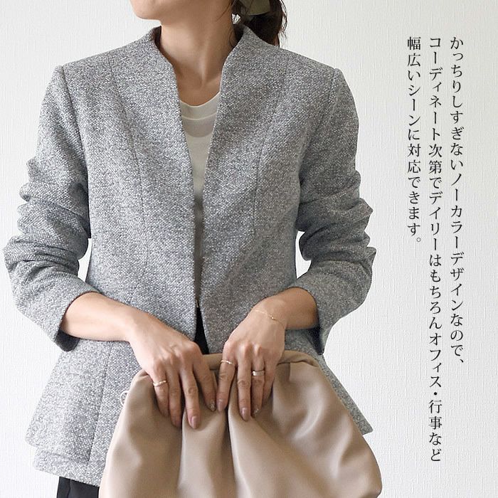 送料無料 サイドペプラムノーカラージャケット レディース 秋 冬 長袖 M L | アクアガレージ aquagarage