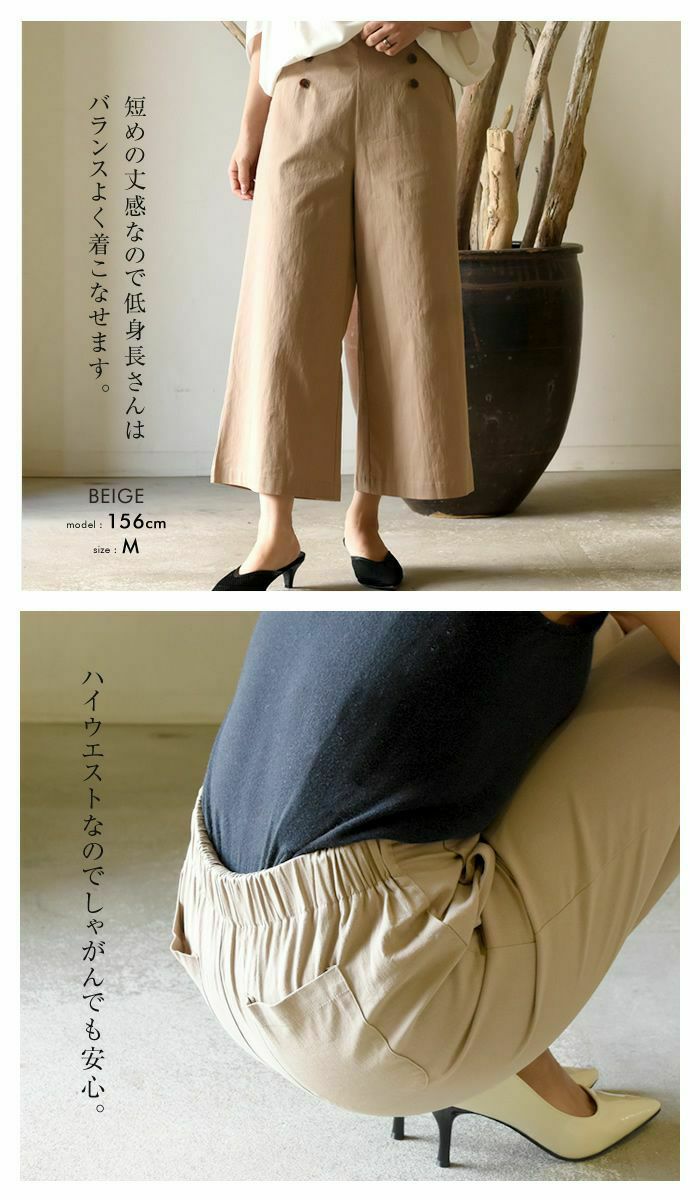 送料無料 フロントボタンワイドパンツ レディース 春 夏 S M L LL ≪ゆうメール便配送20・代引不可≫ | アクアガレージ aquagarage