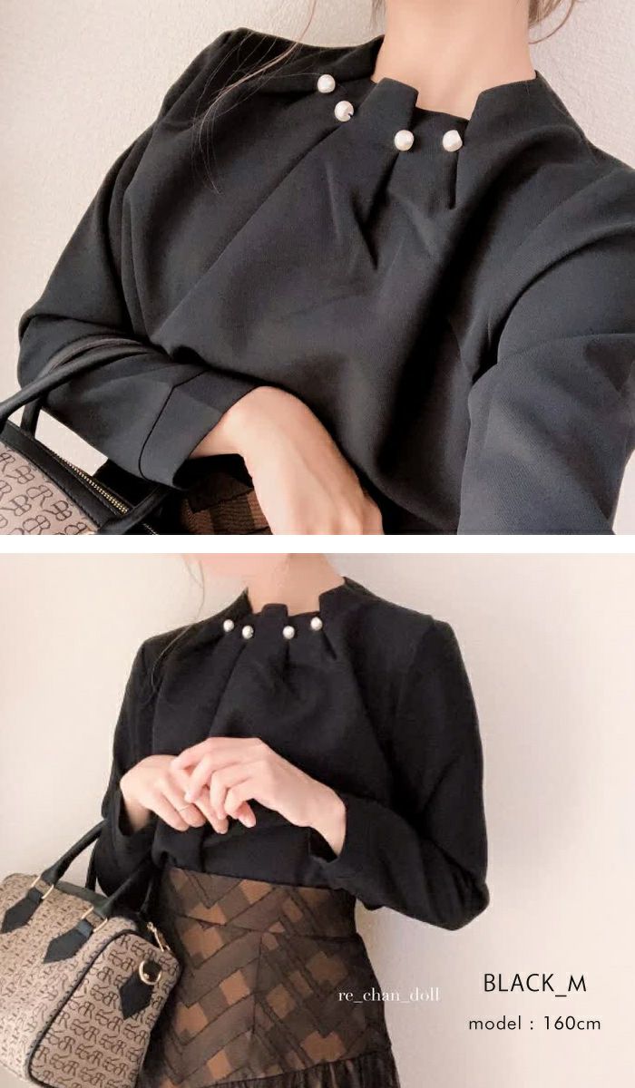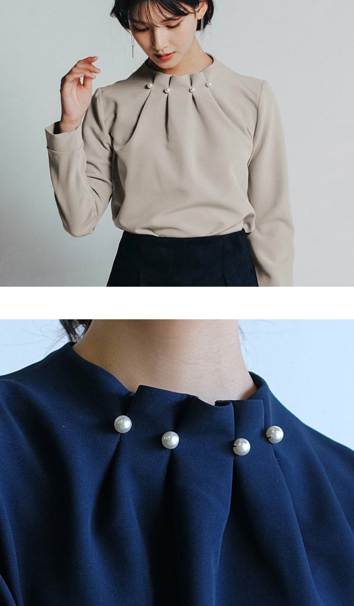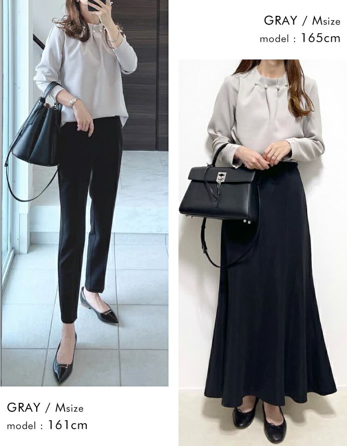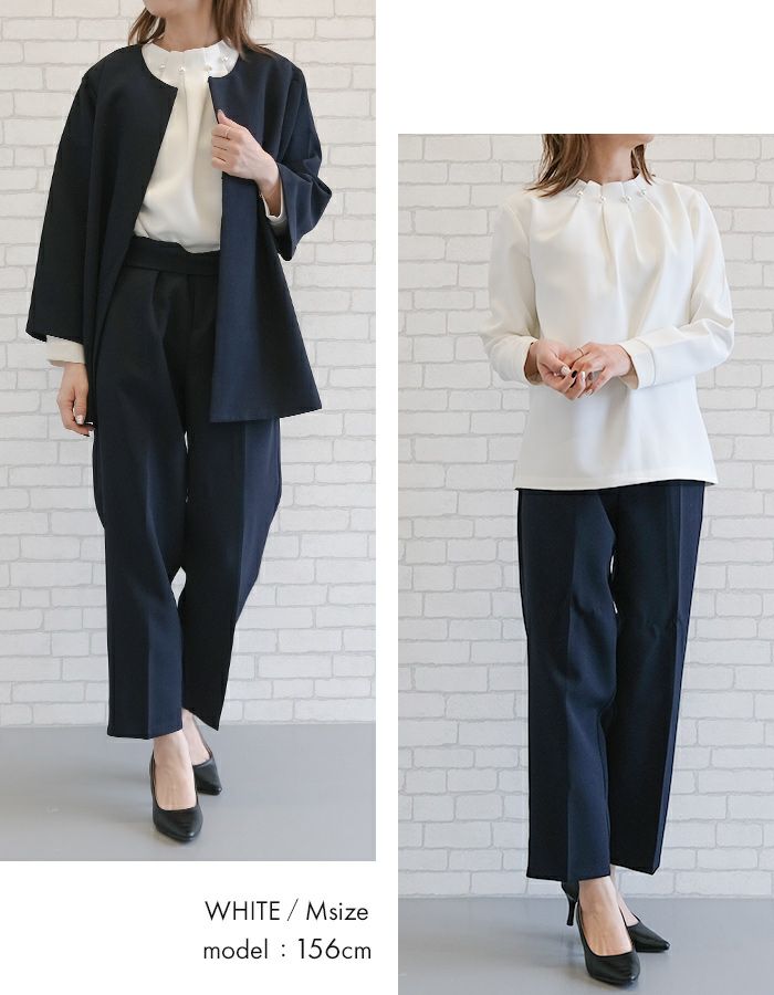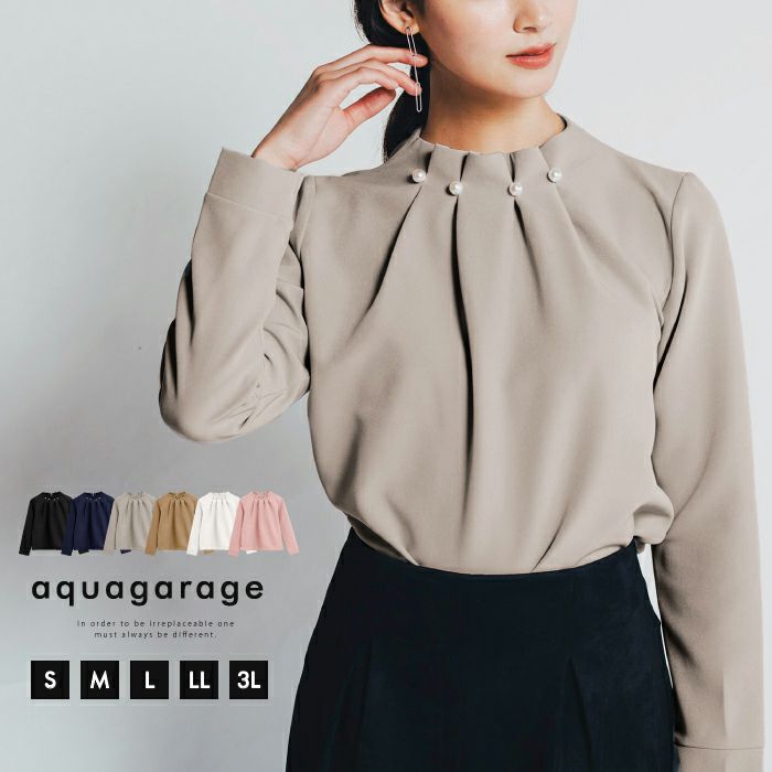 送料無料 パールネックブラウス レディース 春 秋 S M L LL 3L 長袖 ≪ゆうメール便配送30・代引不可≫ | アクアガレージ aquagarage