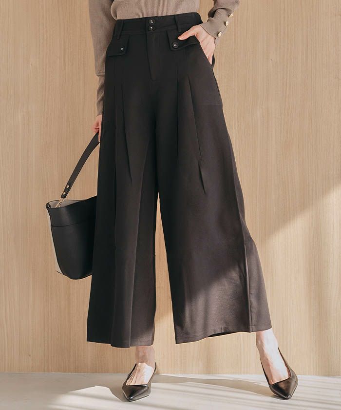 送料無料 フロントタック入りワイドパンツ レディース 春 秋 冬 S P M L LL ≪ゆうメール便配送30・代引不可≫ | アクアガレージ aquagarage