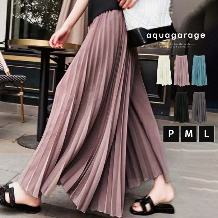 送料無料 シフォンプリーツワイドパンツ レディース 春 夏 M L ≪ゆうメール便配送30・代引不可≫ | アクアガレージ aquagarage