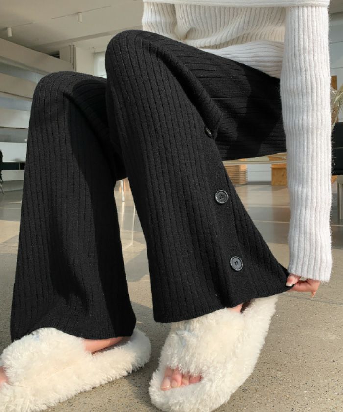 送料無料 裾サイドボタンニットパンツ S P M L レディース | アクアガレージ aquagarage