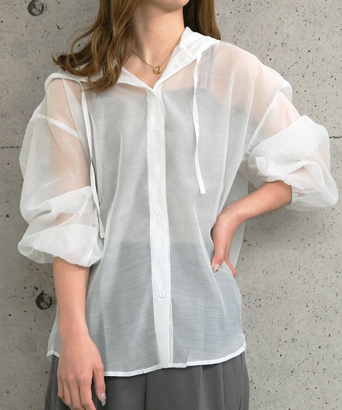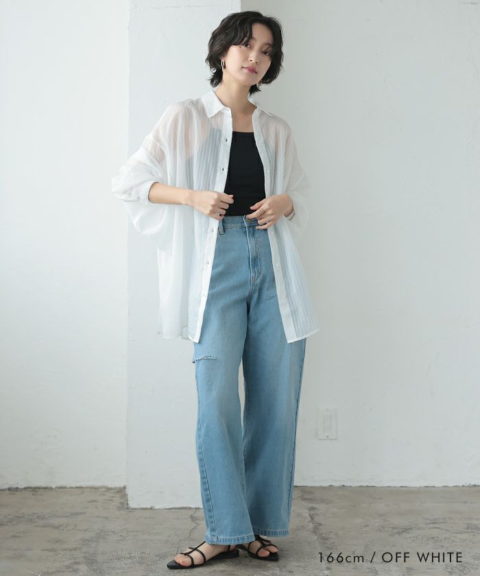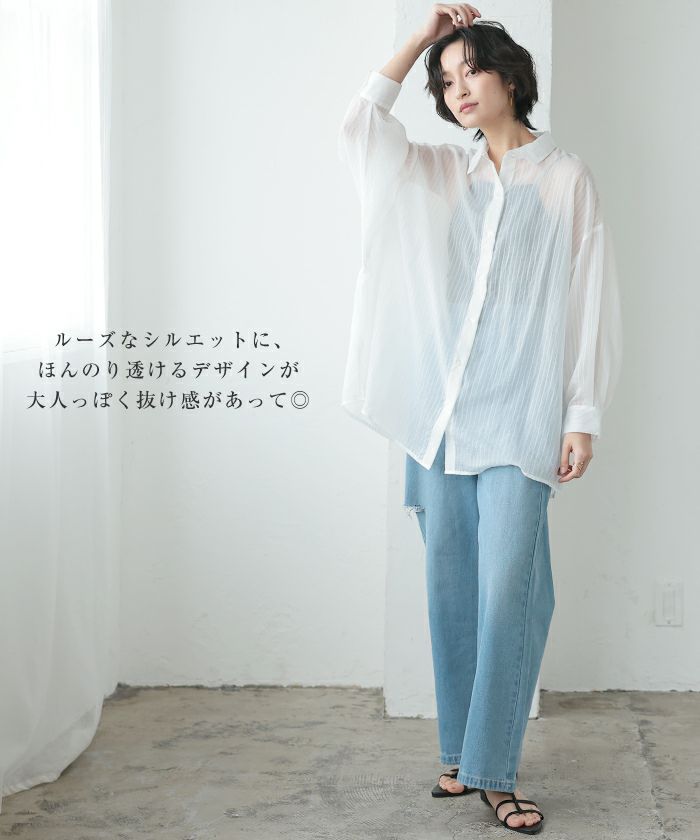 【最終値下げ価格】袖口スリットあきシアーシャツ レディース 春 秋 長袖 M L | アクアガレージ aquagarage