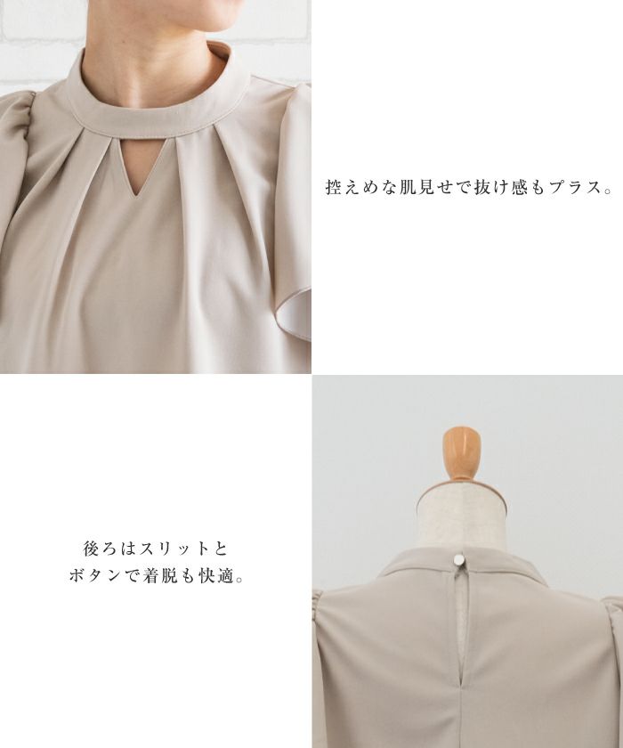 【最終値下げ価格】【セットアップ可】ツイル2wayキーネックパフスリーブトップス レディース 春 夏 秋 M | アクアガレージ aquagarage
