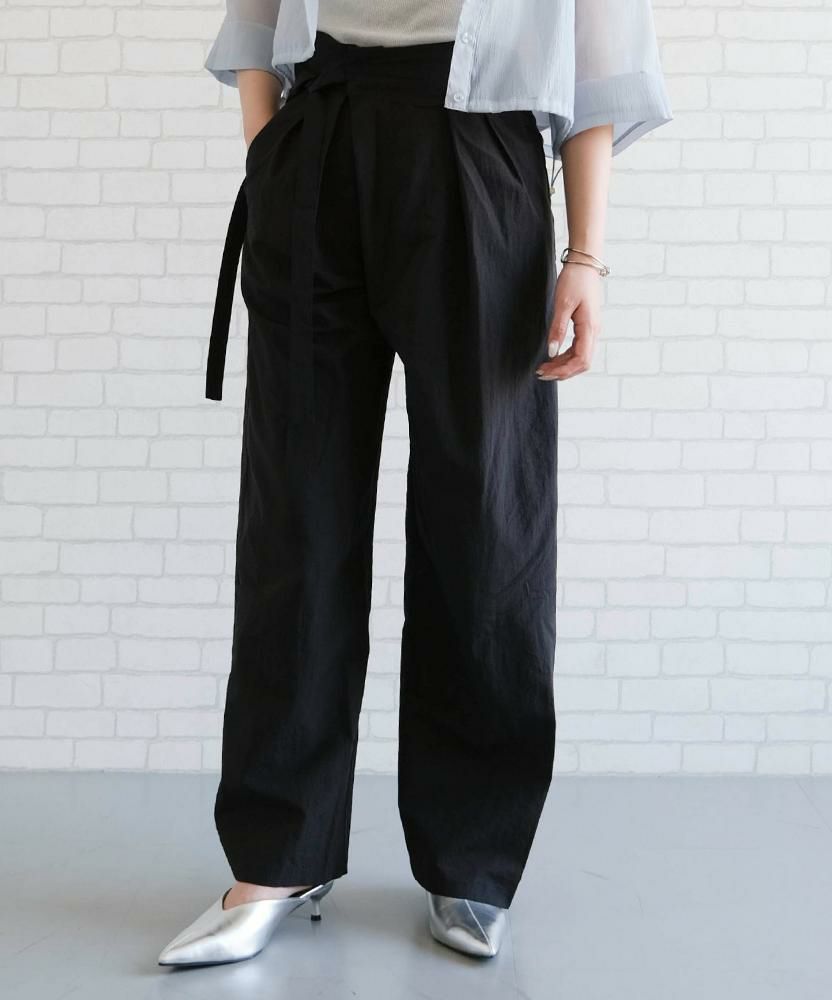 送料無料 ウエストリボンアシンメトリータックパンツレディース 春 夏 秋 M L |≪ゆうメール便配送30・代引不可≫アクアガレージ aquagarage