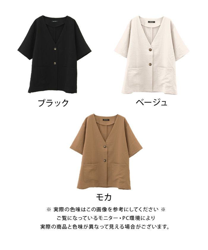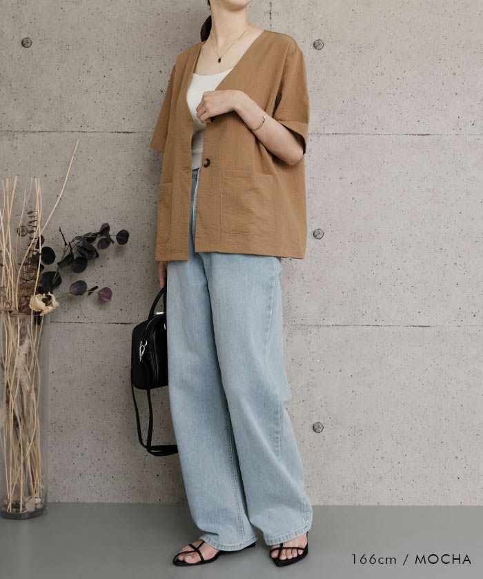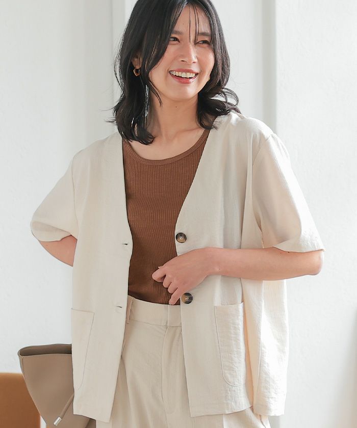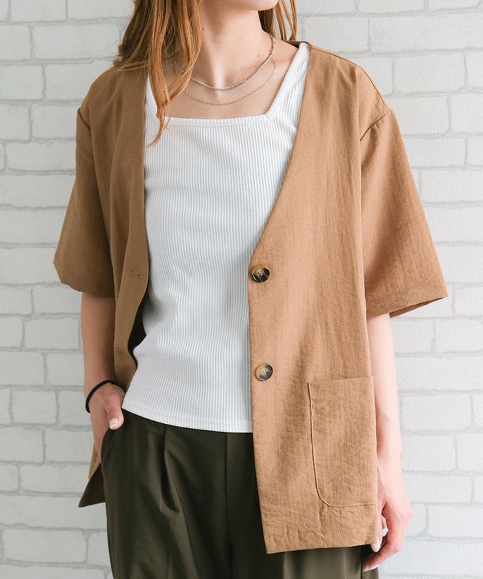 送料無料 ノーカラー半袖ジャケット 春 夏 秋 M | ≪ゆうメール便配送20・代引不可≫アクアガレージ aquagarage