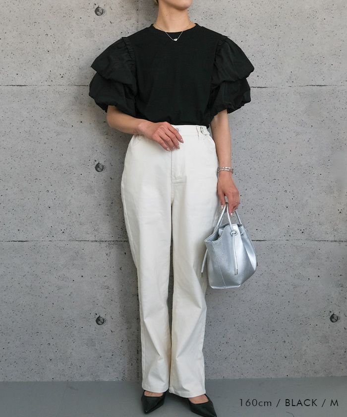 送料無料 ダブルフリル袖異素材カットソー 春 夏 ≪ゆうメール便配送30・代引不可≫ | アクアガレージ aquagarage