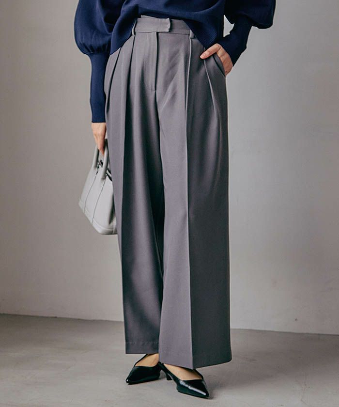 送料無料 ヘリンボーンタックパンツ レディース 春 秋 冬 M |アクアガレージ aquagarage