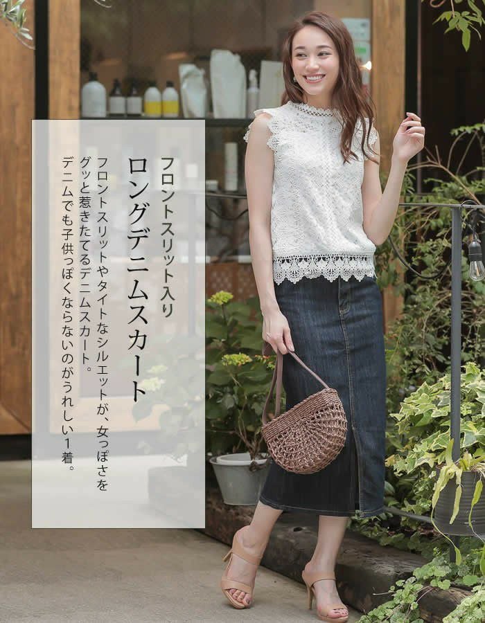 フロントスリット入りロングデニムスカート S~LLサイズ | アクアガレージ aquagarage